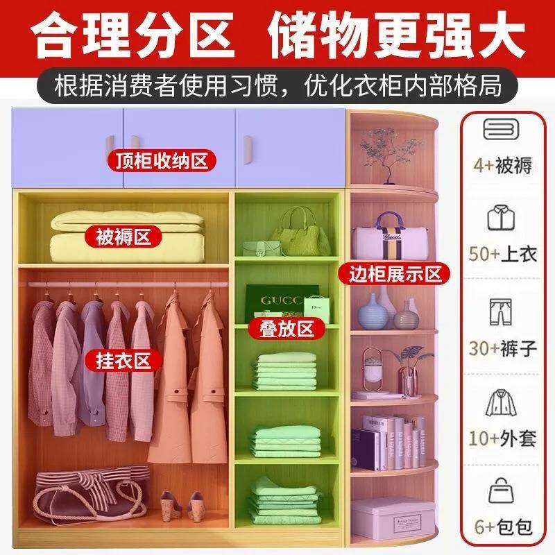 📚 高颜值衣柜家用卧室储落地式四门出租房用实木出租屋大衣橱小户型