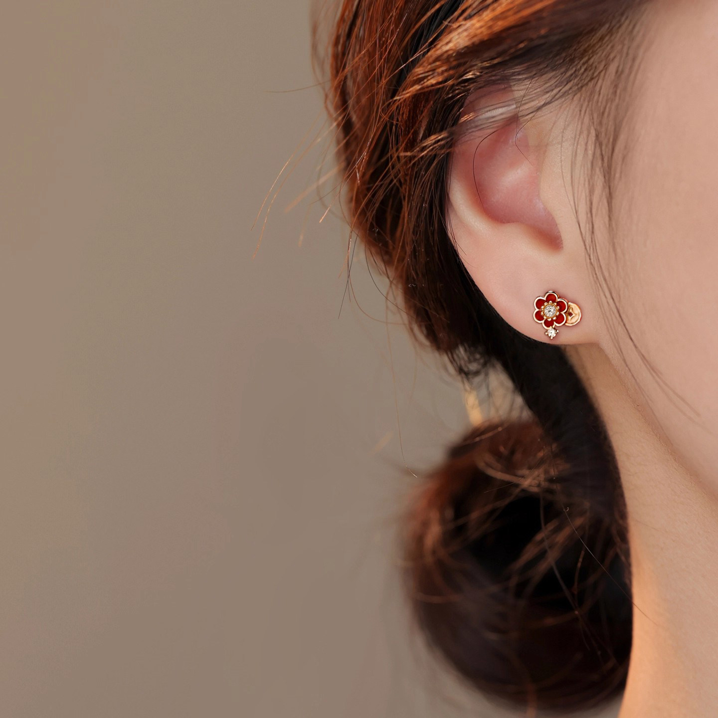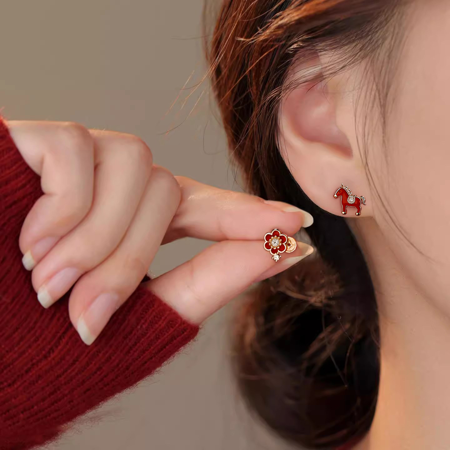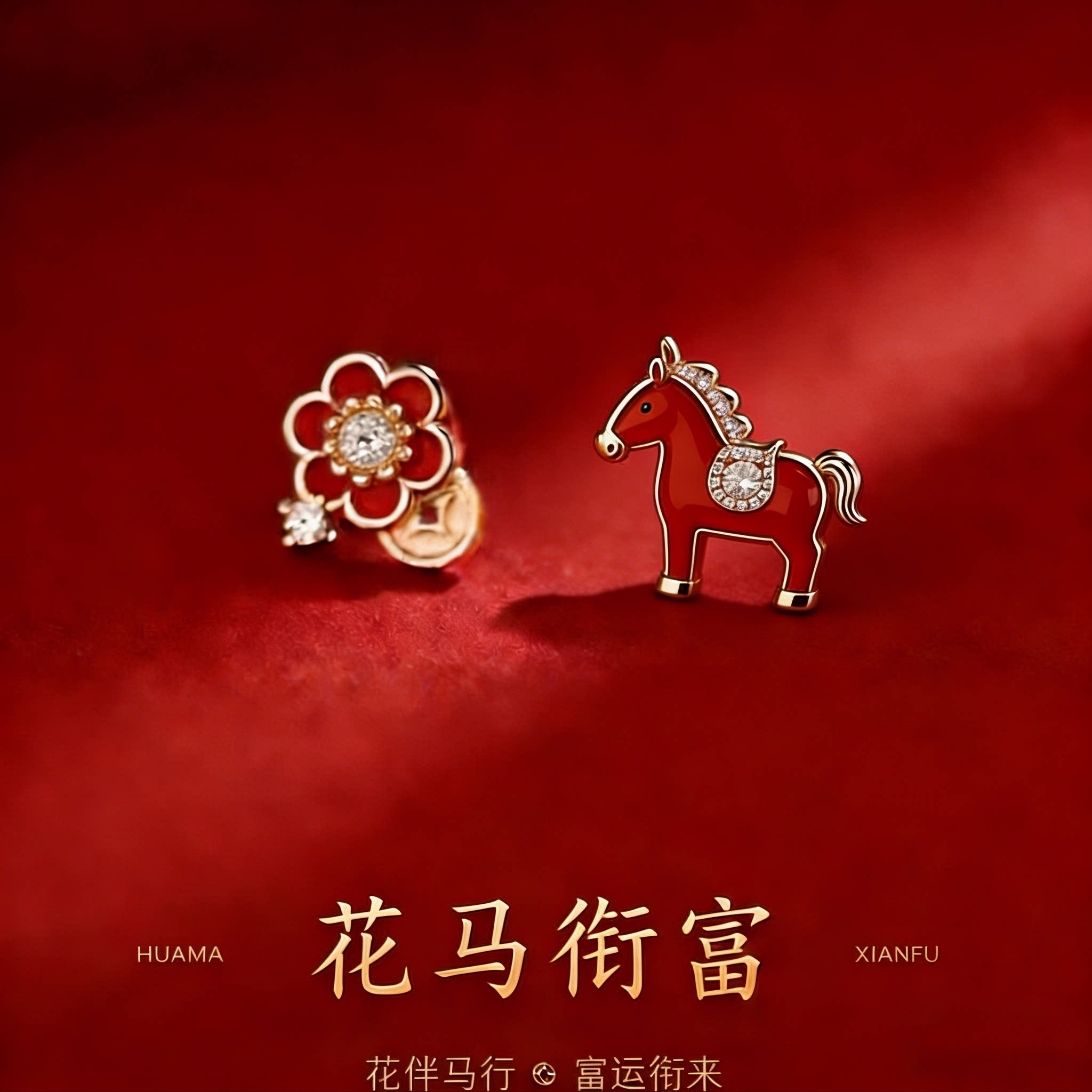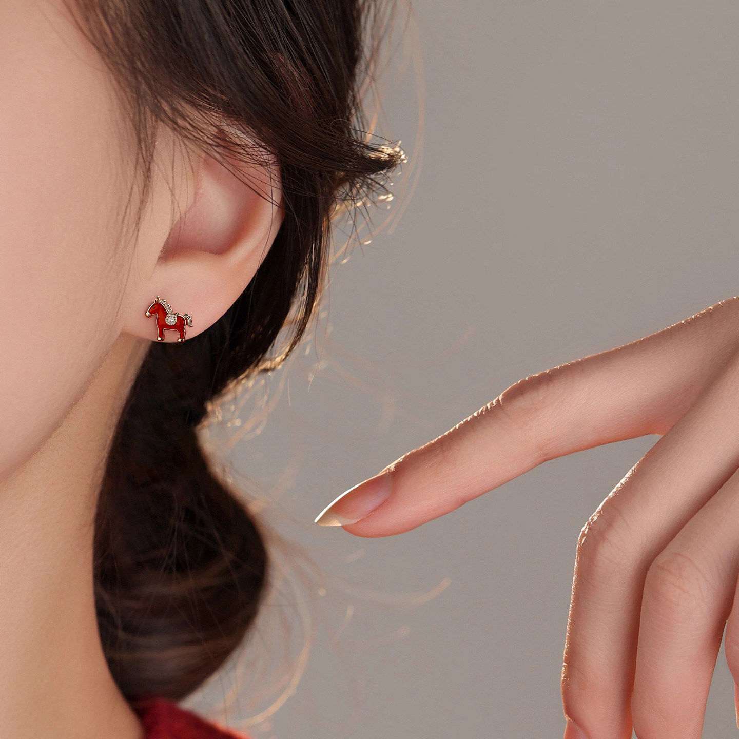 📚 花马衔富耳钉女2026本命年新年红色喜庆耳环巨好看漂亮高级感耳饰
