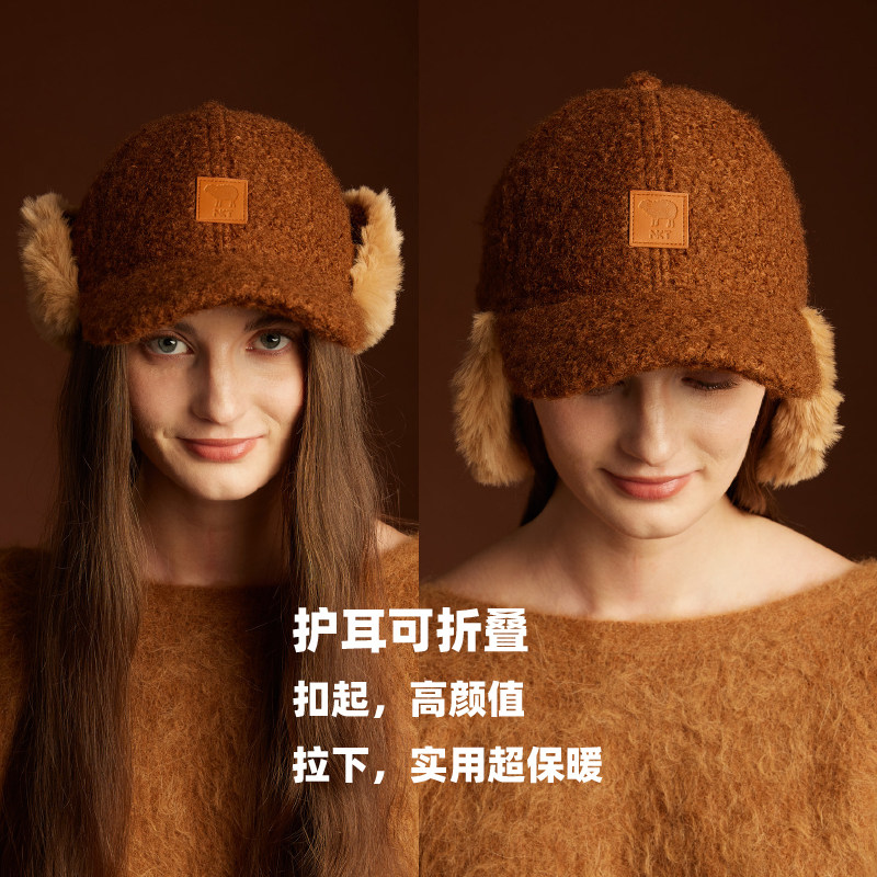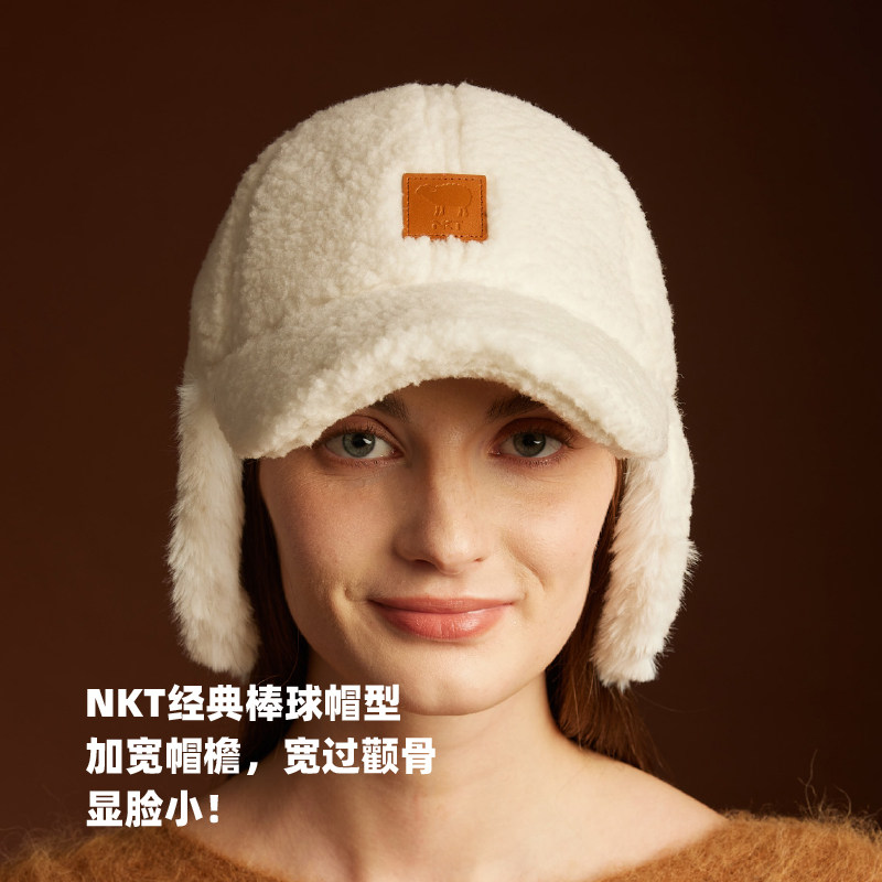 📚 NKT羊羔绒护耳棒球帽冬季保暖鸭舌帽高颅顶带耳套帽子显脸小好看