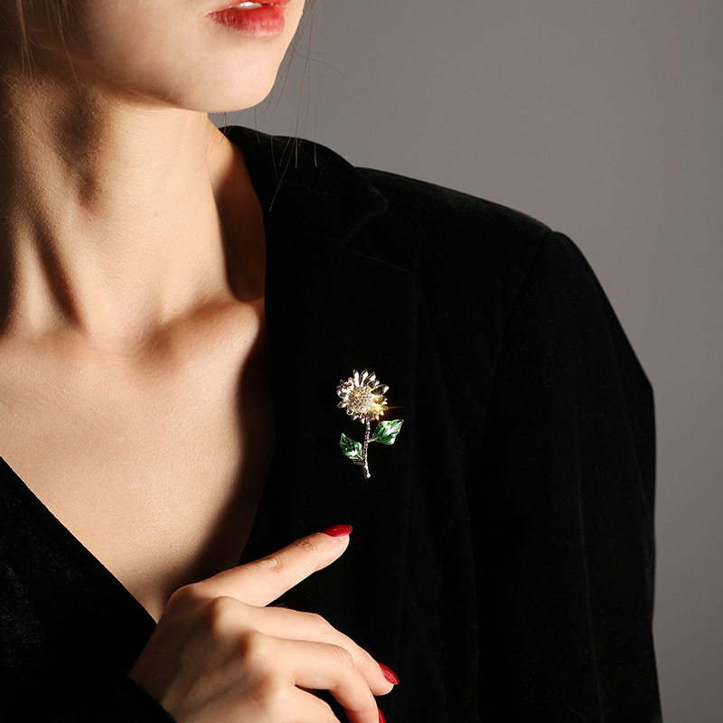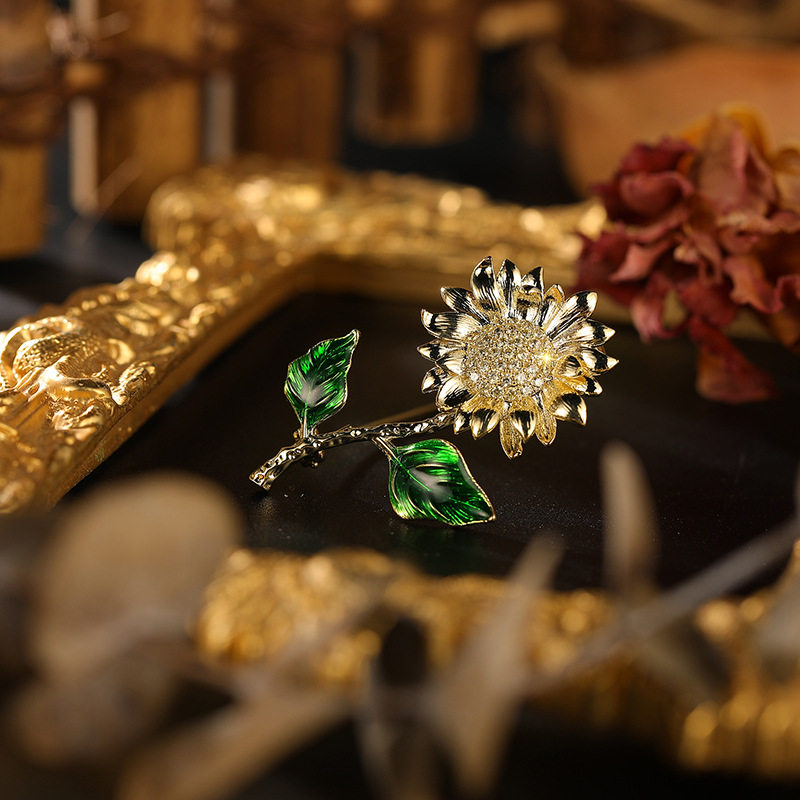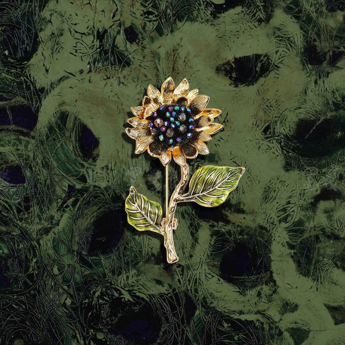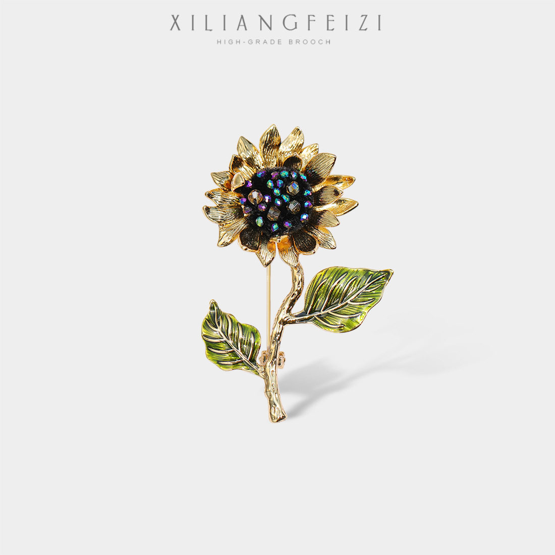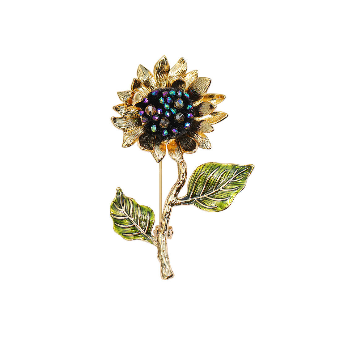 📚 时尚新款复古梵高向日葵胸针高档花卉水晶个性金色胸花别针礼物