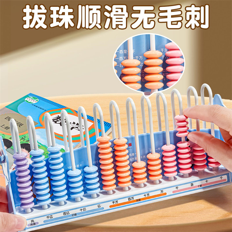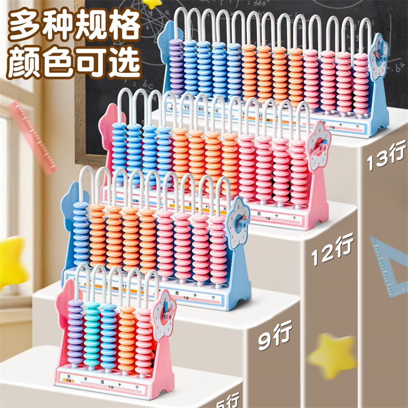 📚 小学生计数器儿童数学教具加减法神器专用计数架算术启蒙算盘加减数学教具5/9/12行13档千亿兆数位学习算盘珠