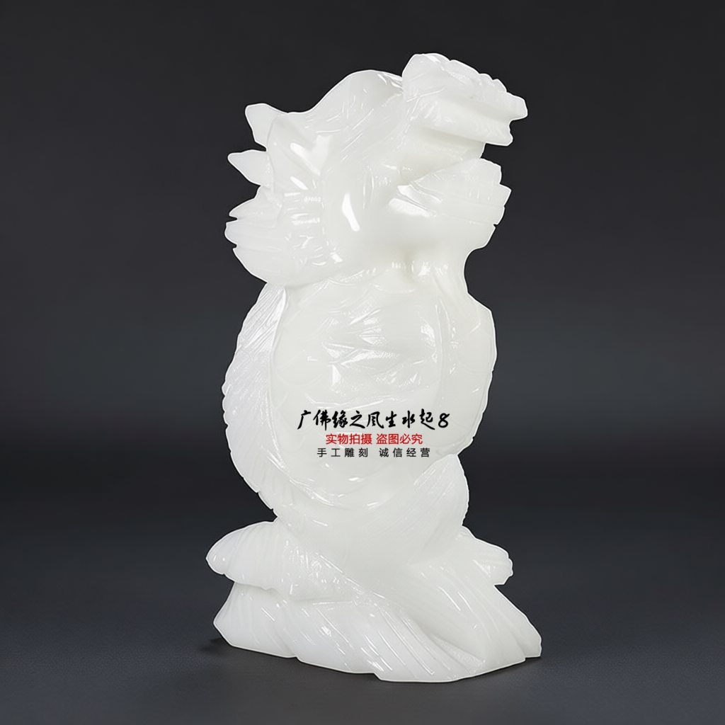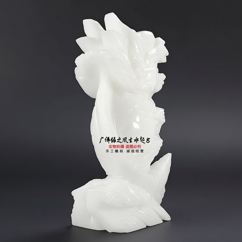 📚 白玉鱼化龙摆件独占招财旺运龙头鱼鳌头家居办公室风水玉石摆设