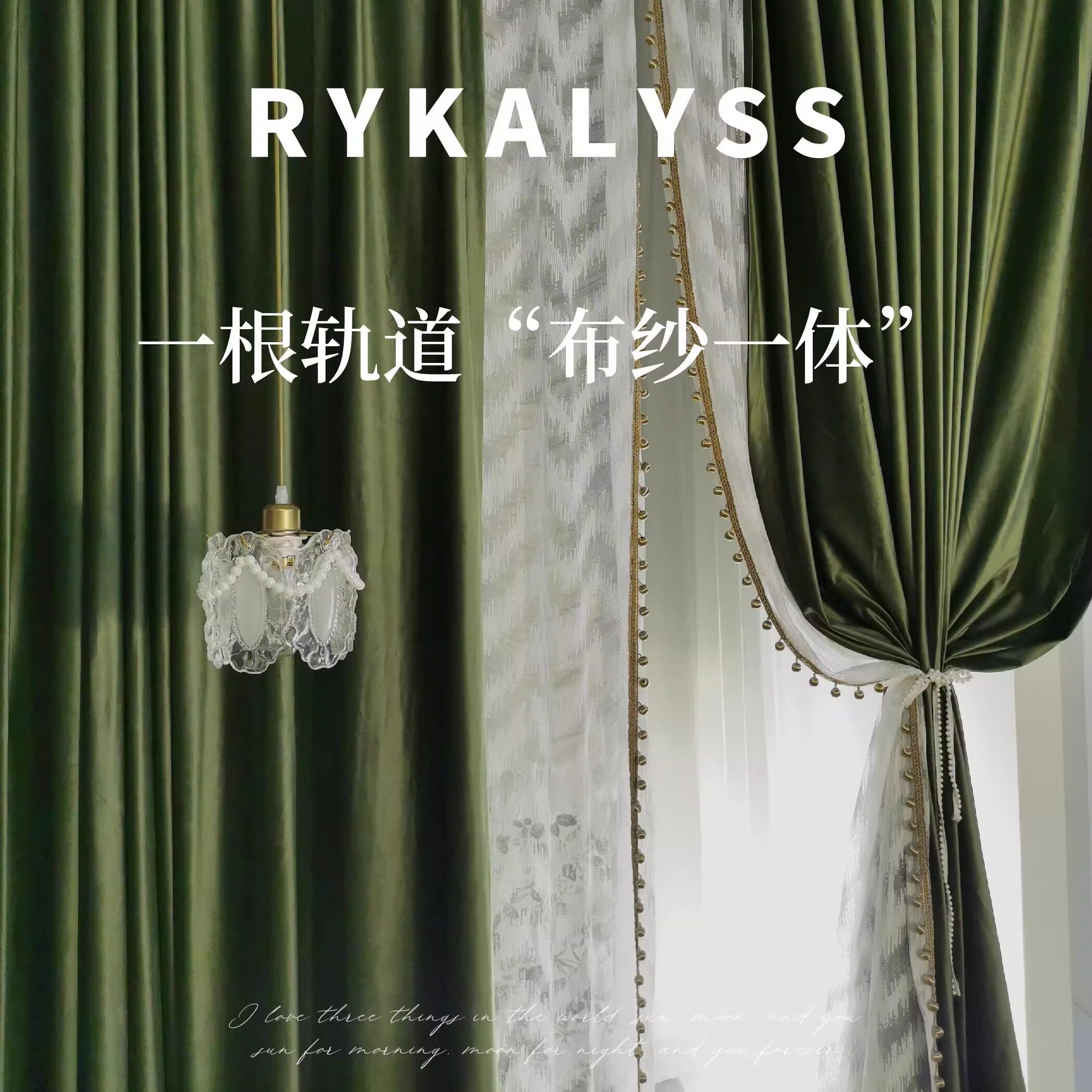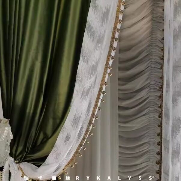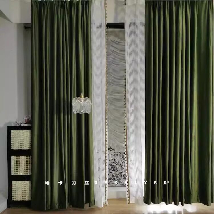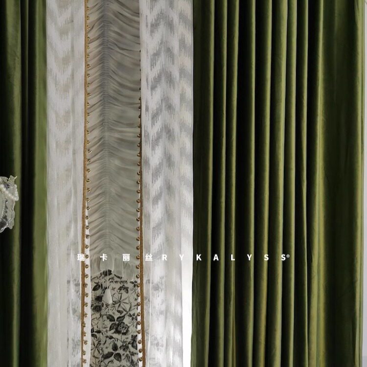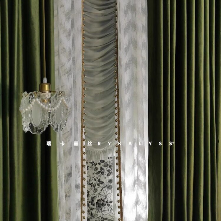 📚 瑞卡丽丝布纱一体挂一根轨道超好看的法式复古丝绒黄橄榄绿色窗帘