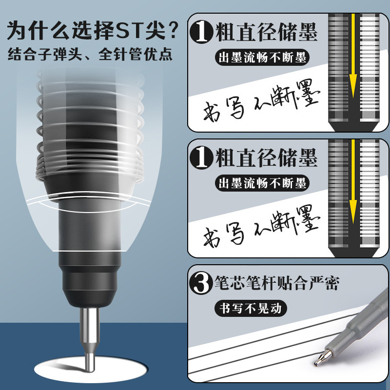📚 得力按动笔芯0.5黑色中性笔芯子弹头学生考试专用按压式0.38全针管教师批改红色笔芯蓝色0.7尖锥头ST头替芯