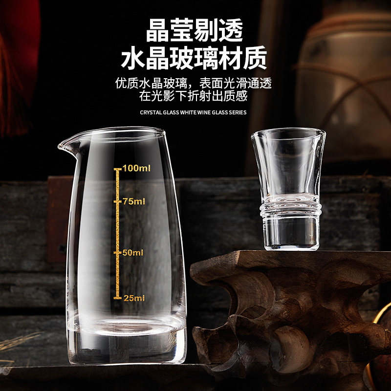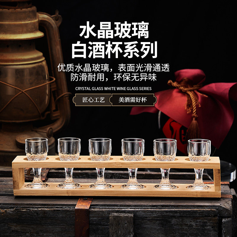 📚 家用白酒杯玻璃分酒器杯架套装小酒杯小号烈酒杯子弹杯酒盅一口杯
