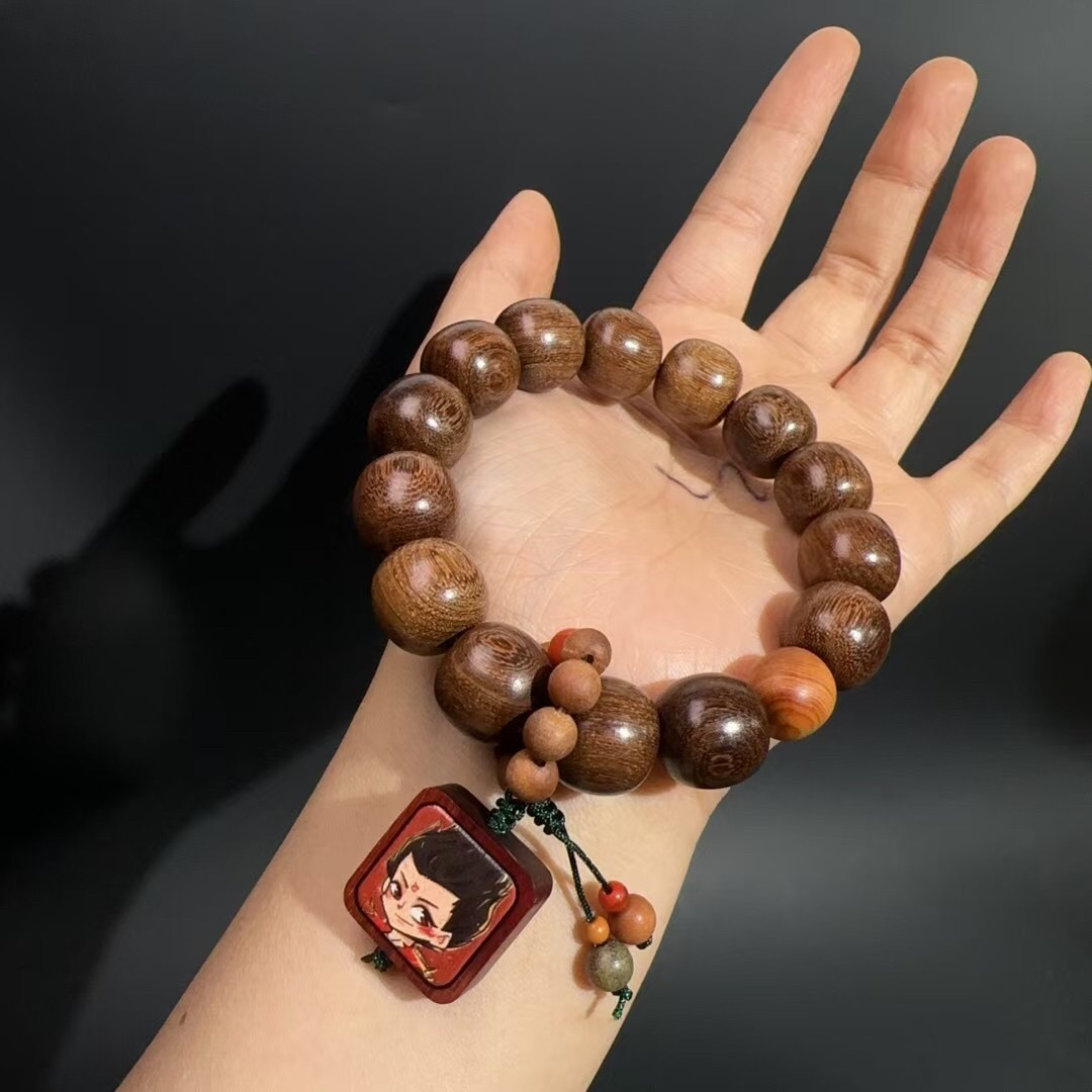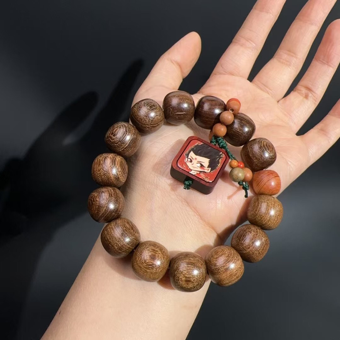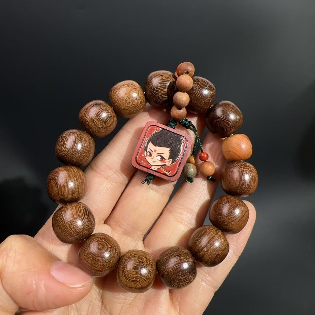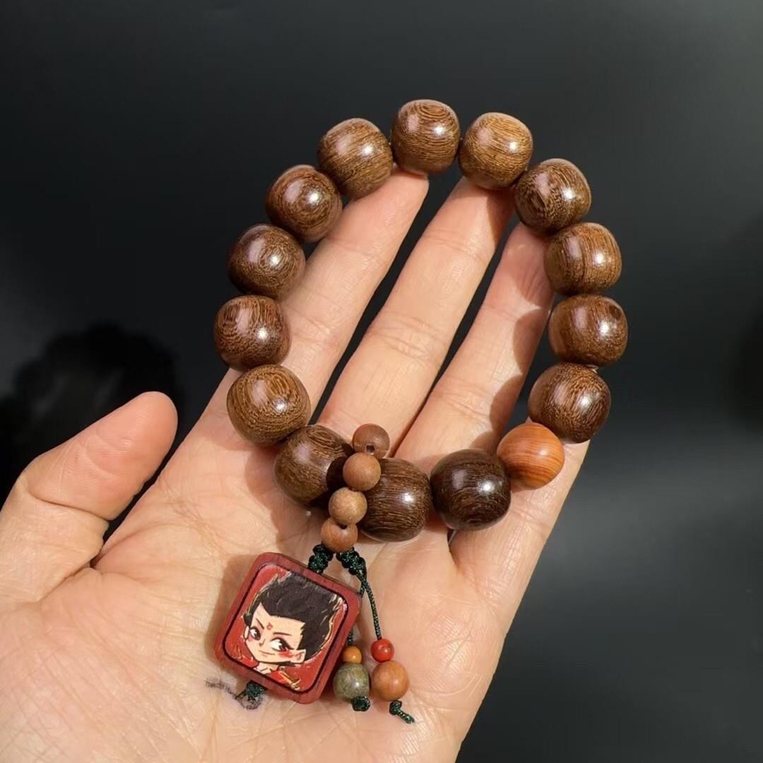 📚 14*15MM金丝檀木老型手链搭配哪吒烤漆吊饰品男女文玩手串