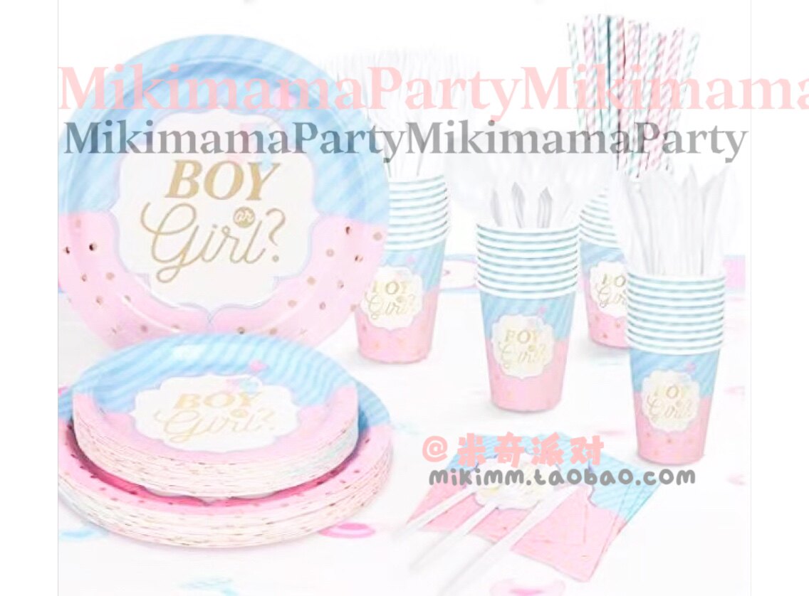 📚 现货男孩女孩babyshower派对婴儿生日纸杯纸盘刀叉勺桌布装饰套装