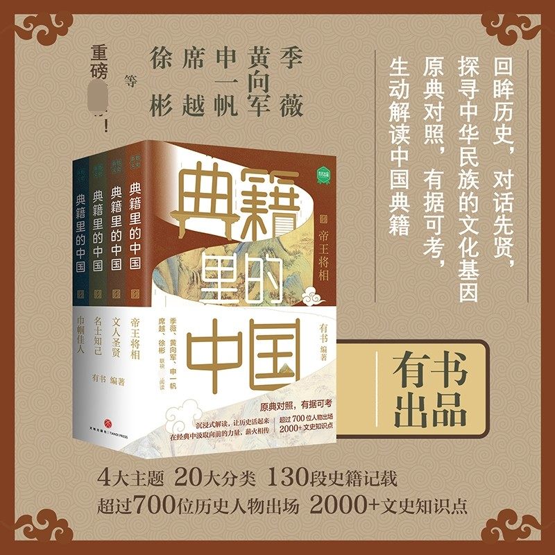 📚 典籍里的中国 【套装全4册】文化圣贤+帝王将相+巾帼佳人+名士知己 有书出品中国文史通史历史弘扬传统文化畅销书籍排行榜 天地