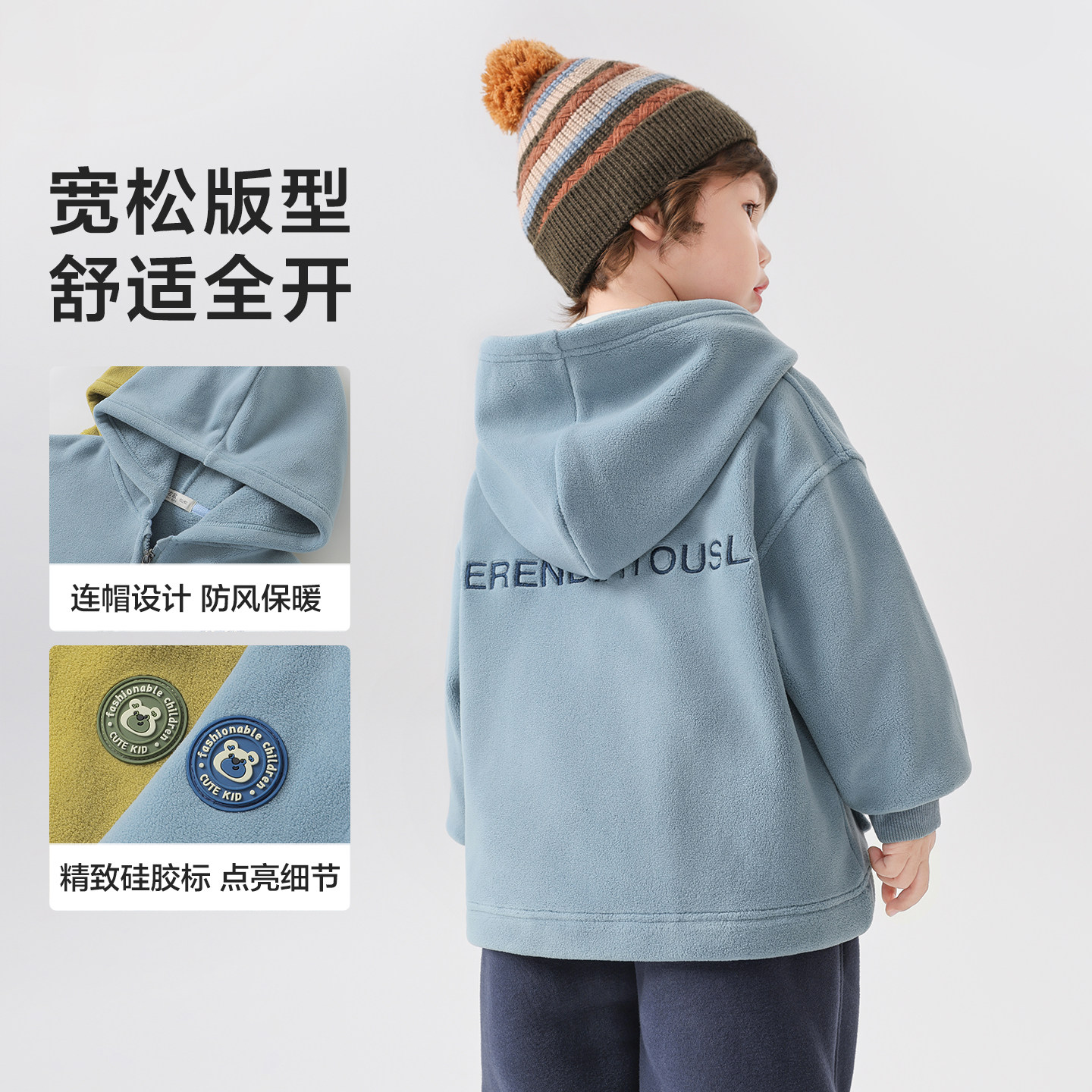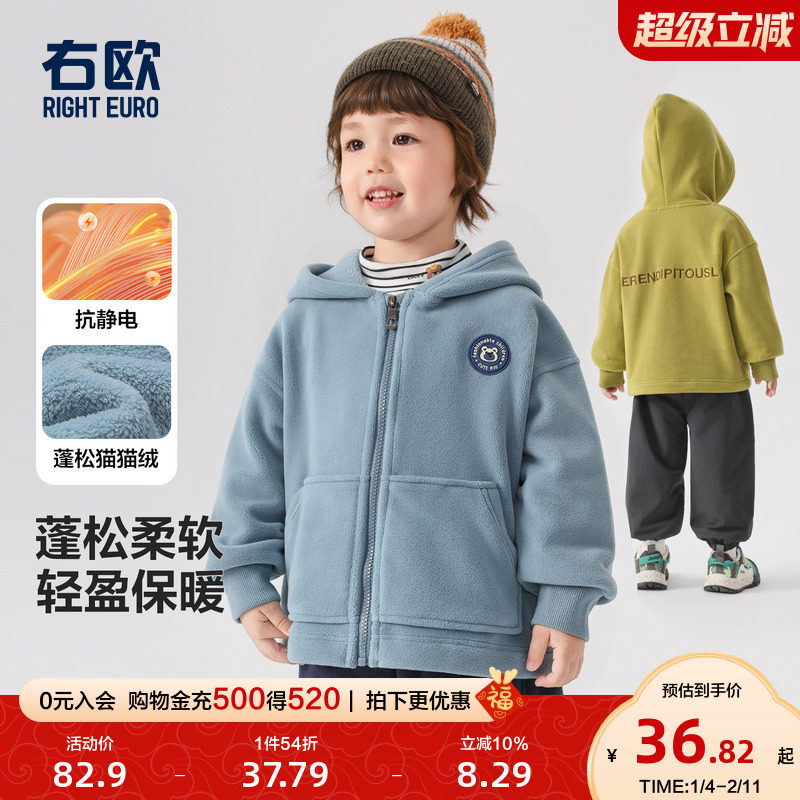 📚 右欧男童女童加绒连帽外套可爱猫猫绒秋冬季新款童装儿童保暖上衣