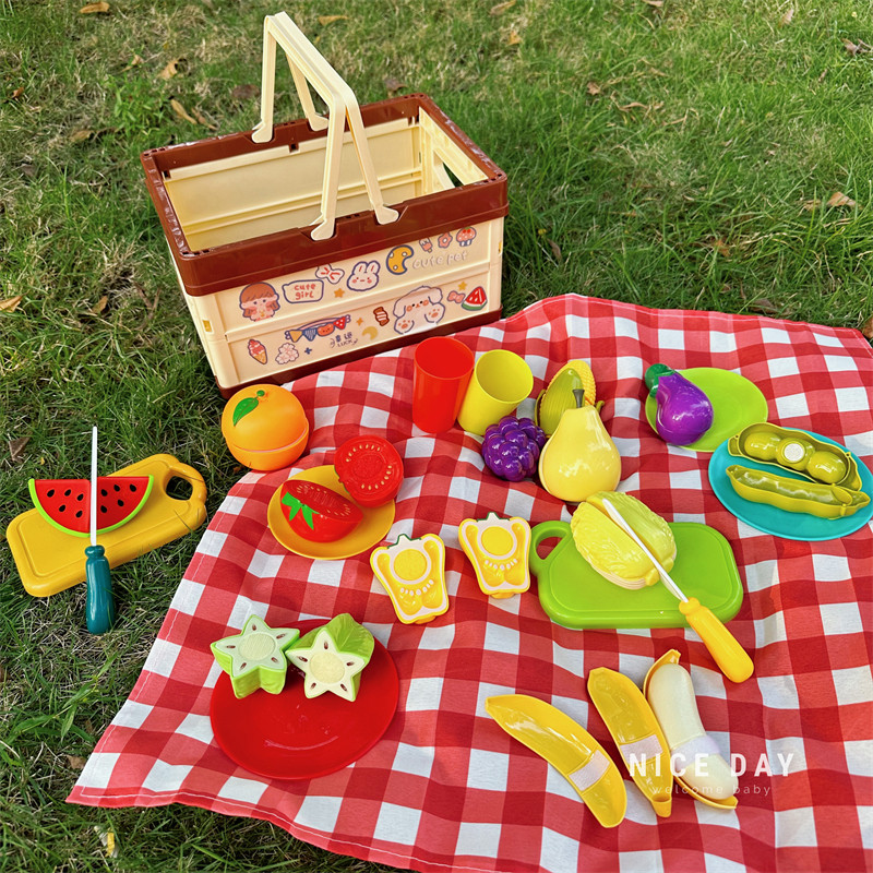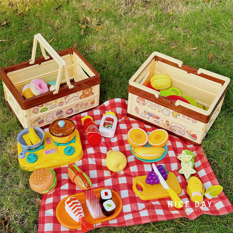 📚 韩国儿童扮家家酒露营宝宝野餐篮男女孩切切乐仿真厨具