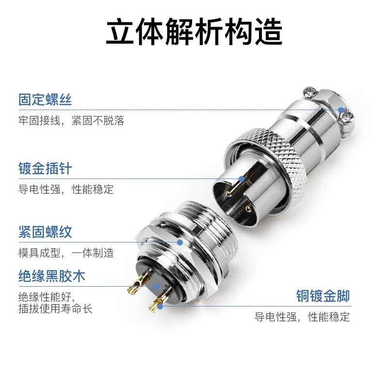 📚 GX16航空插头公母头反装铜芯镀金DF16-2 3 4 5 6 7 8芯电缆连接器
