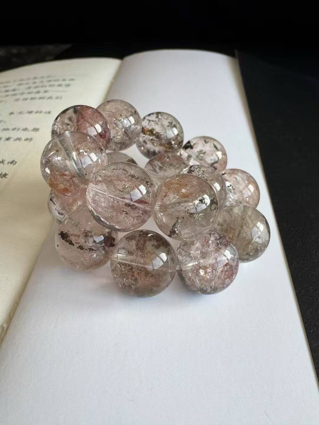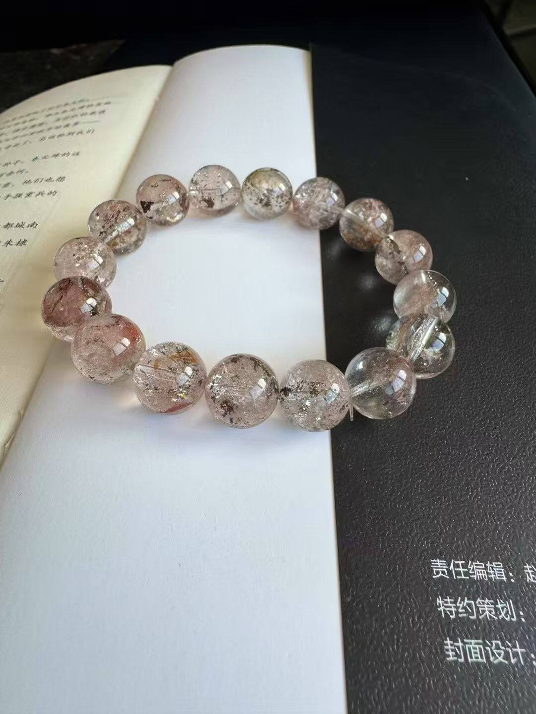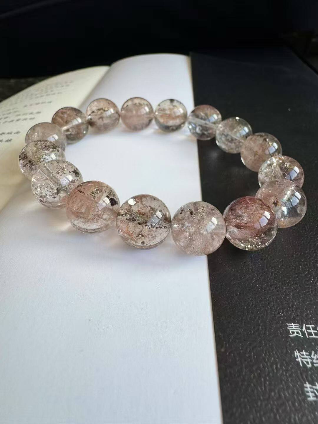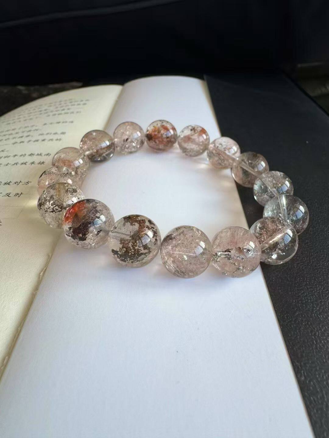 📚 稀有水晶收藏多矿共生粉色矿物铜矿针铁矿赤铁矿手串