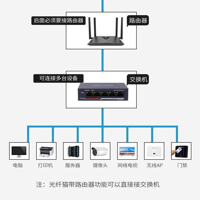 📚 海康威视POE网线交换机百兆千兆5/8/16/24/48口监控交换机标准48V