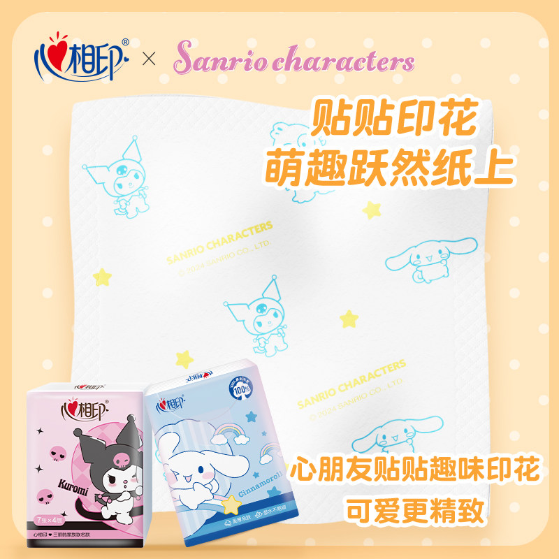 📚 心相印三丽鸥联名纸巾4层7片12包手帕纸随身便携装餐巾纸ss