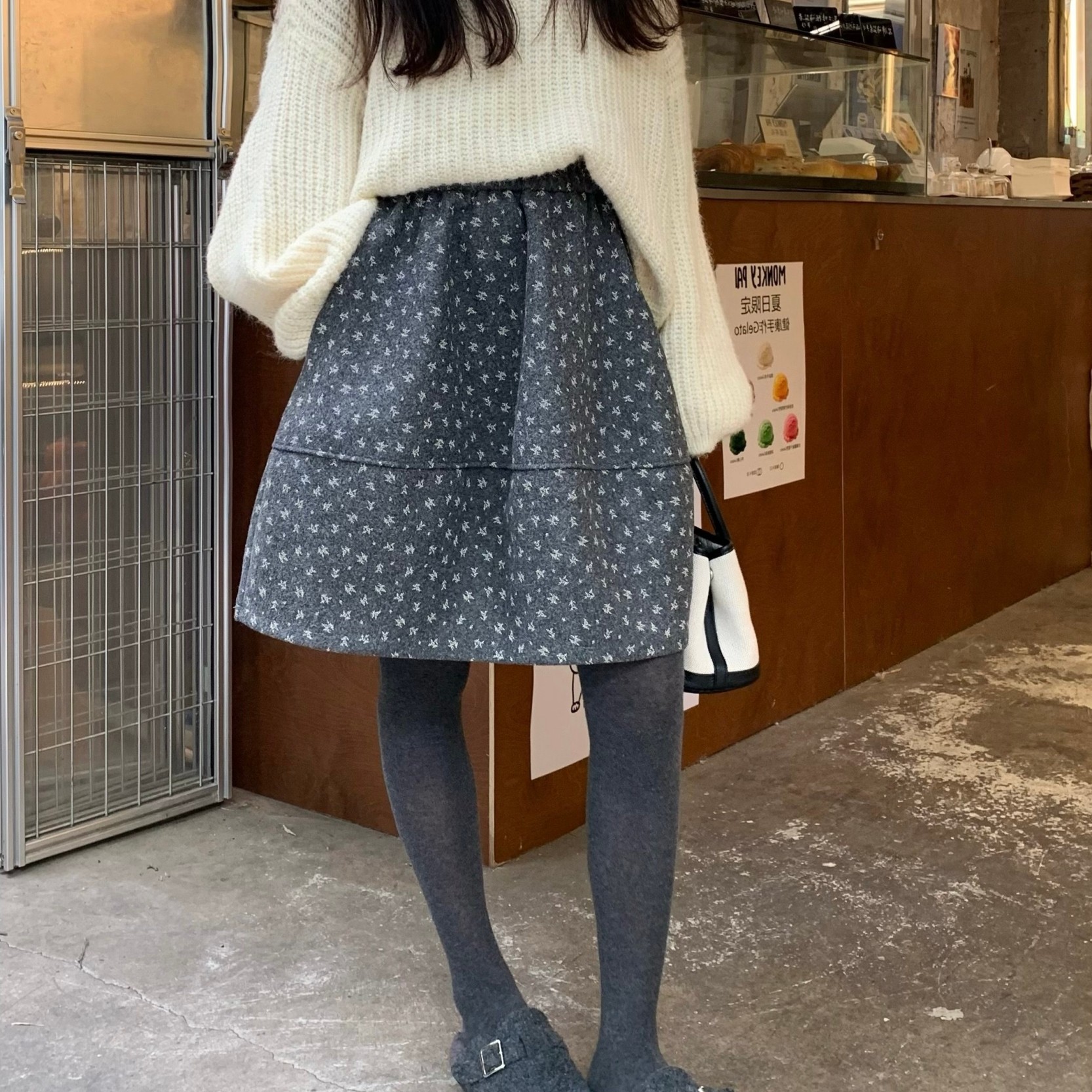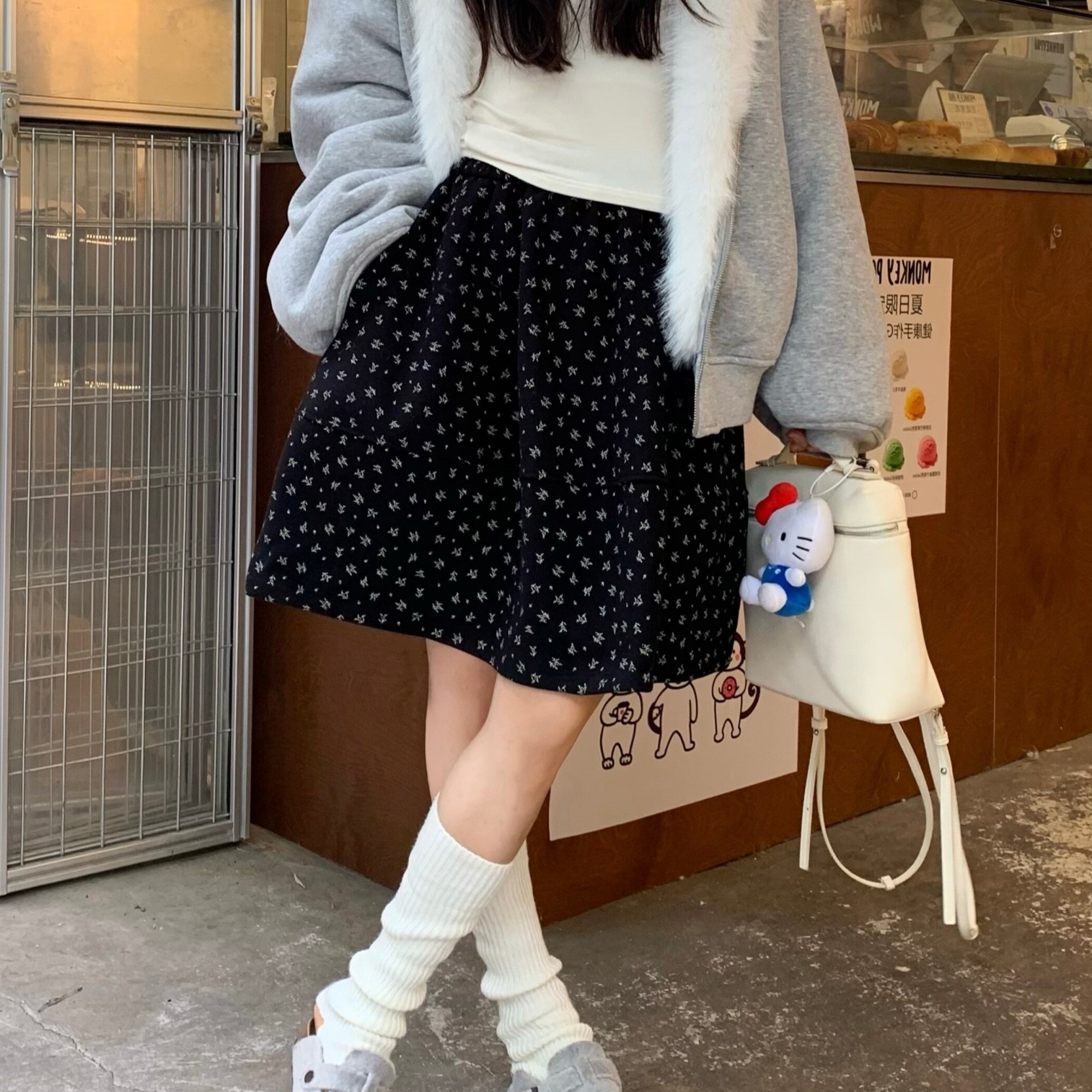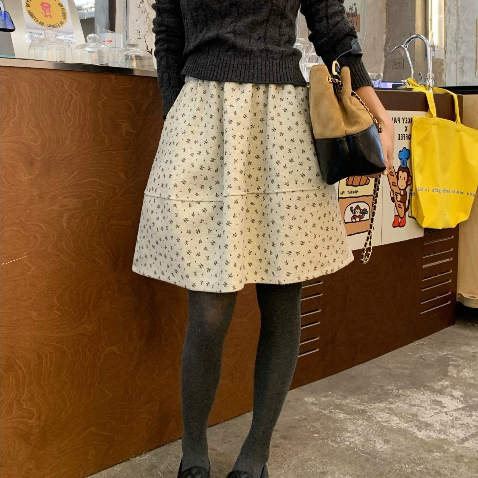 📚 法式韩系复古温柔碎花短裙半身裙女春秋冬季内搭花苞A字蓬蓬伞裙