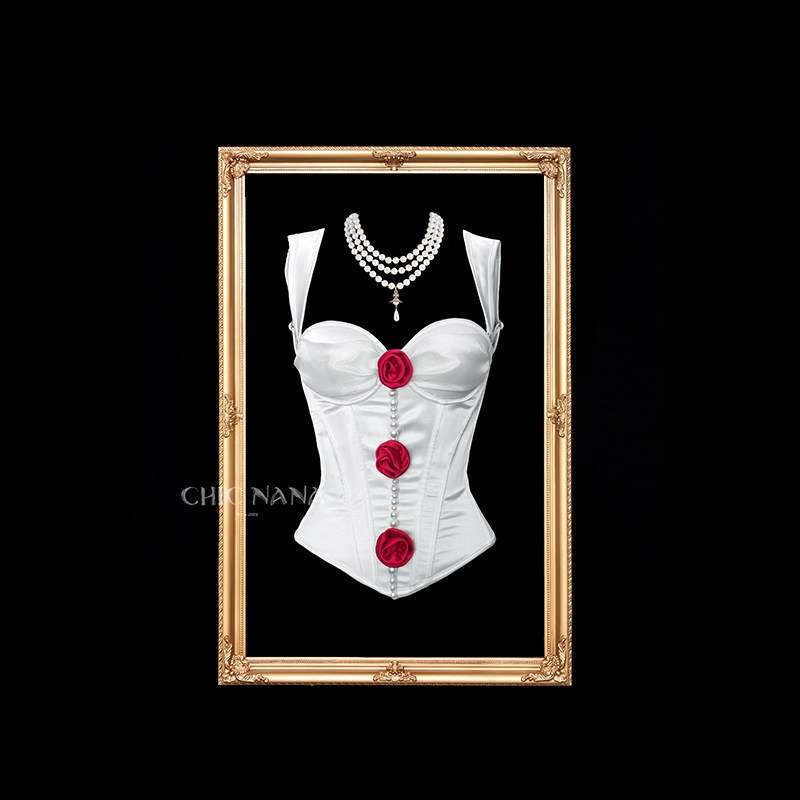 鱼骨贴花抹胸修身动心