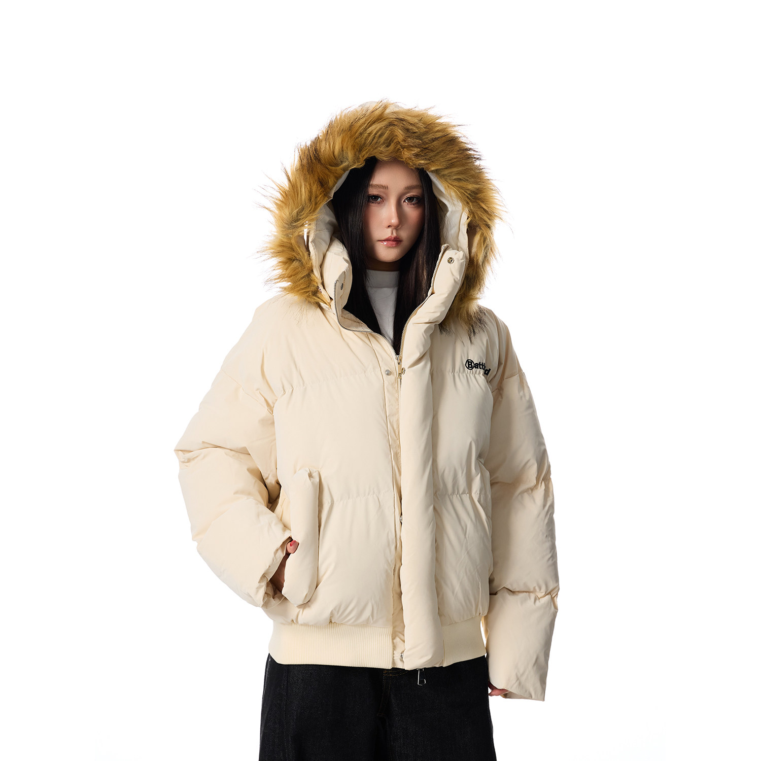 📚 SREK 美式复古可拆连帽冬季加厚保暖高级感毛领派克棉服夹克外套
