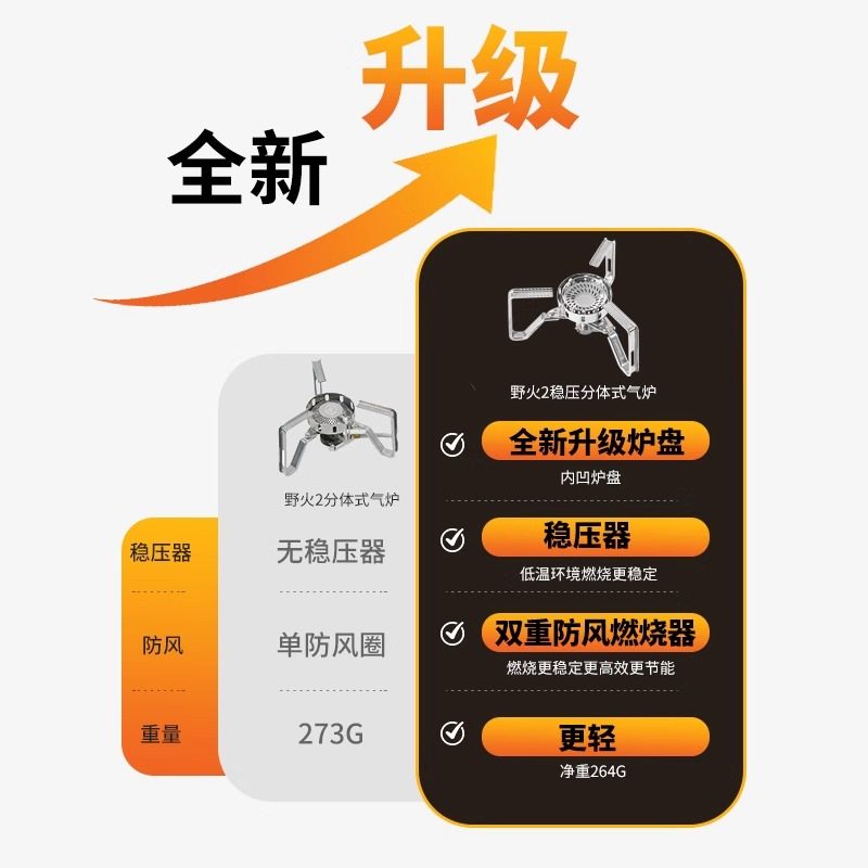 🔥🍵🔥火枫野火2稳压分体户外防风炉具卡式炉燃气灶,露营新宠!券后价仅206!💥