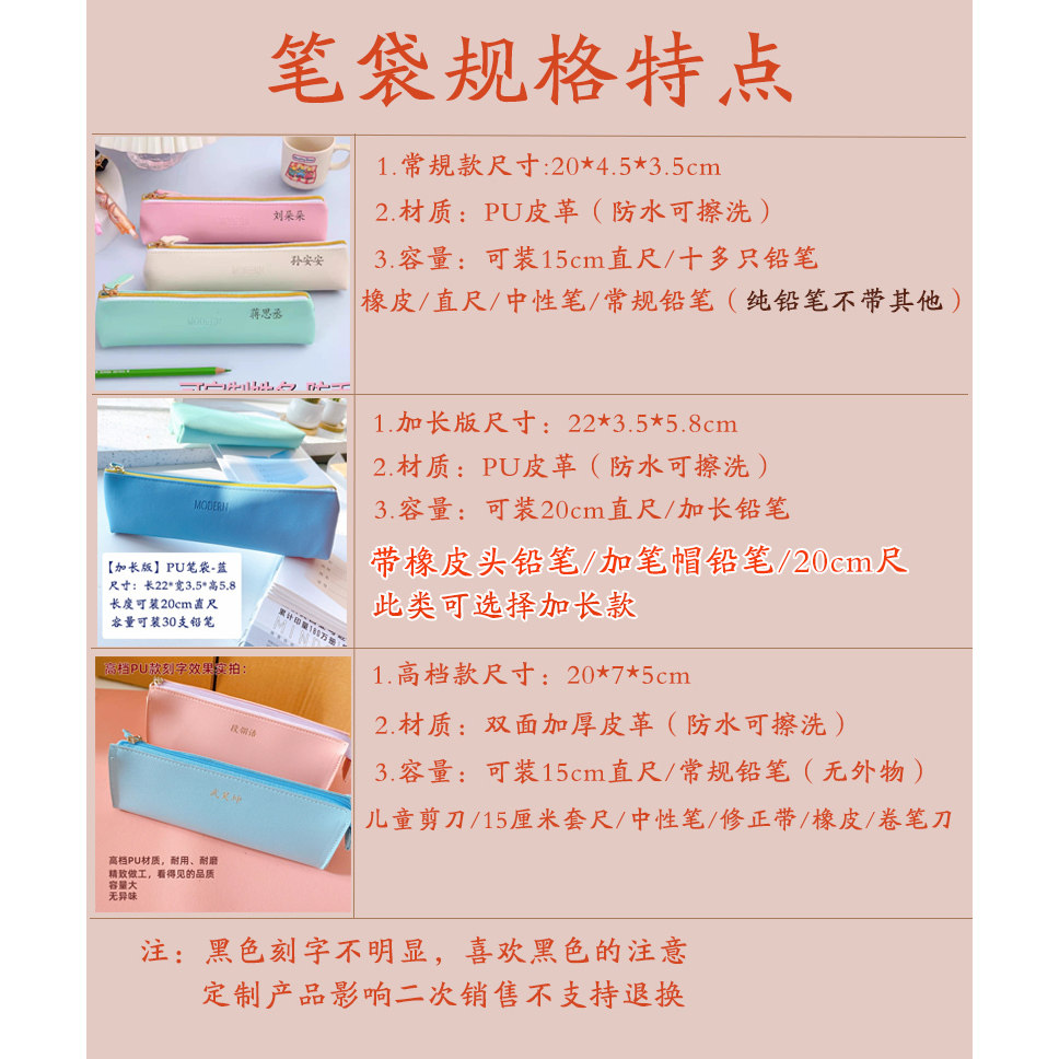📚 免费定制小学生笔袋文具幼儿园一年级皮质定制刻名字防丢儿童铅笔