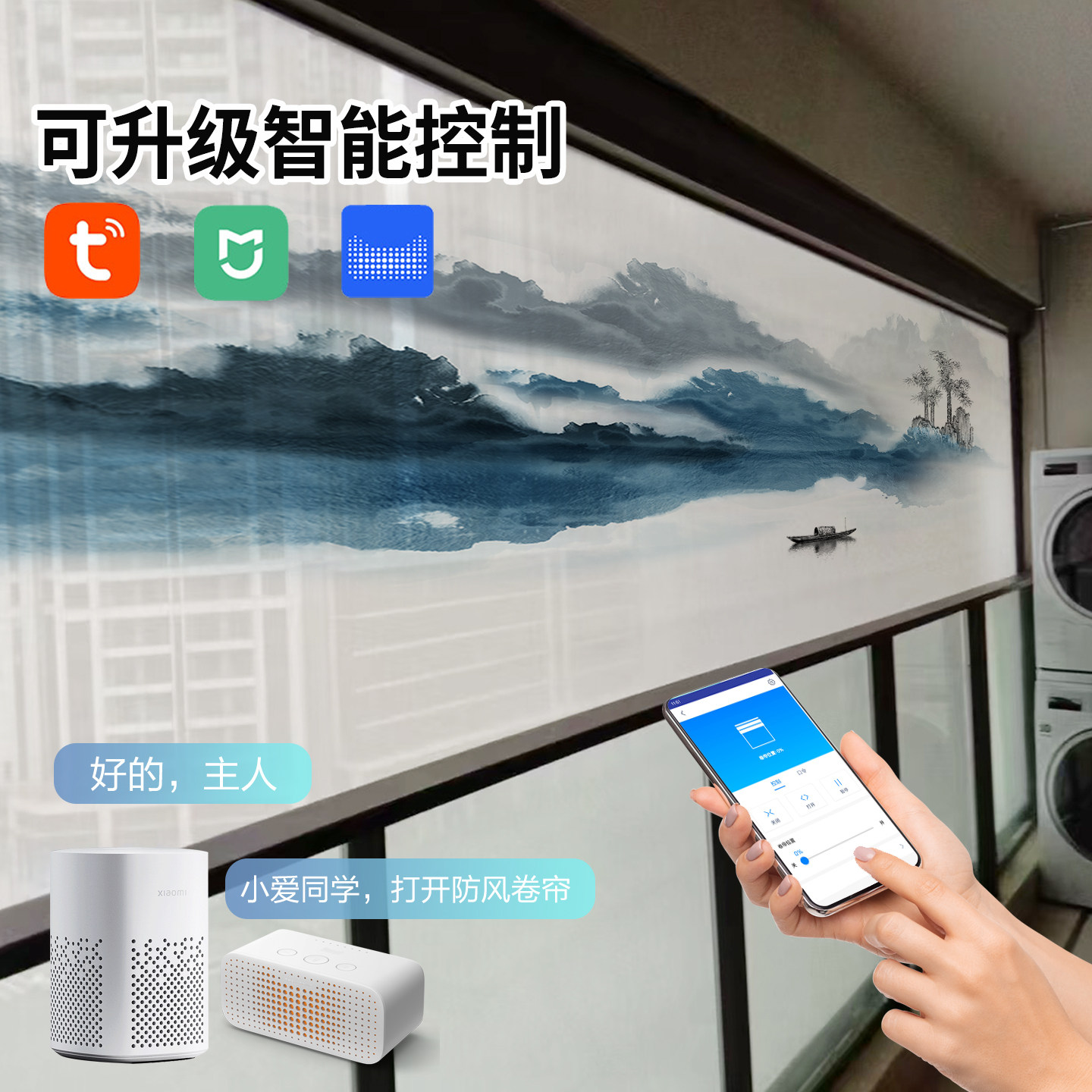 📚 恒基阳台电动防风卷帘户外防风雨遮光帘智能升降窗帘挡隐私帘客厅