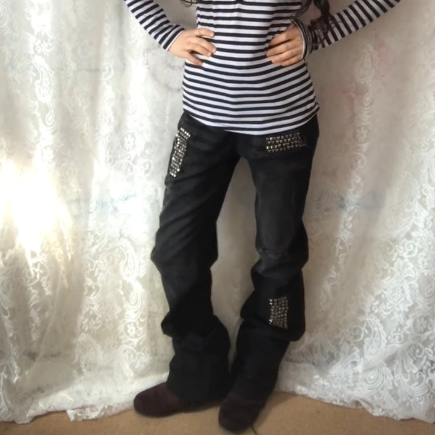📚 大码美式复古水洗破洞铆钉牛仔裤女朋克亚文化修身显瘦直筒长裤子