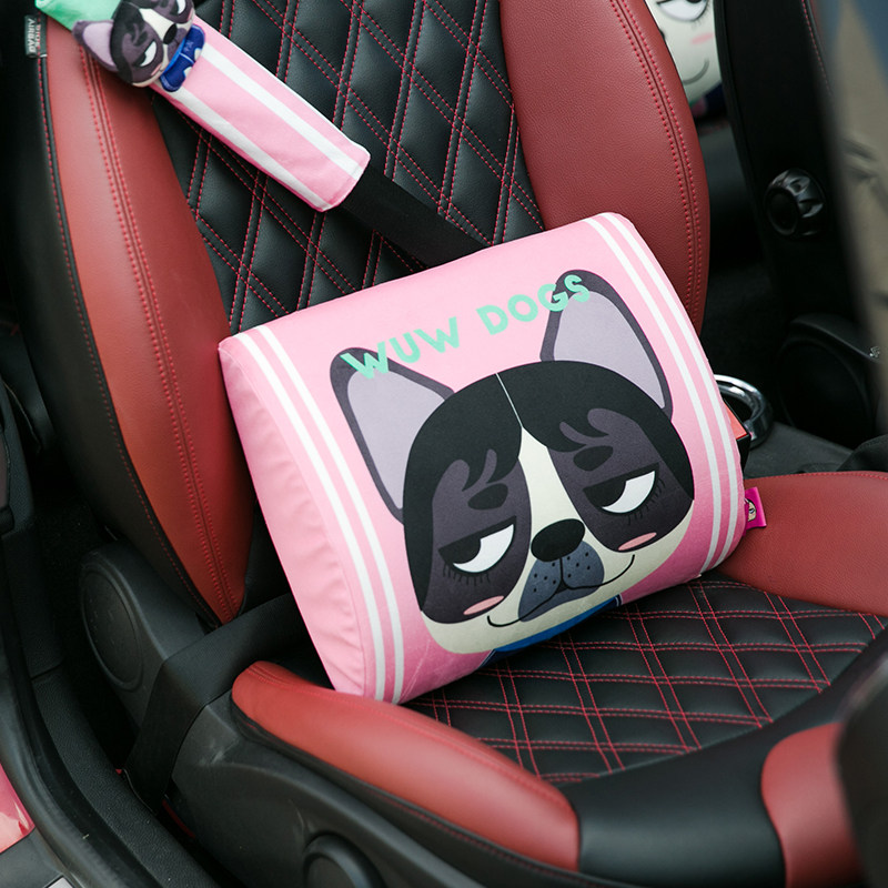 📚 卡里努努呜呜狗卡通记忆棉汽车腰靠车用护腰靠垫办公室车载靠背垫
