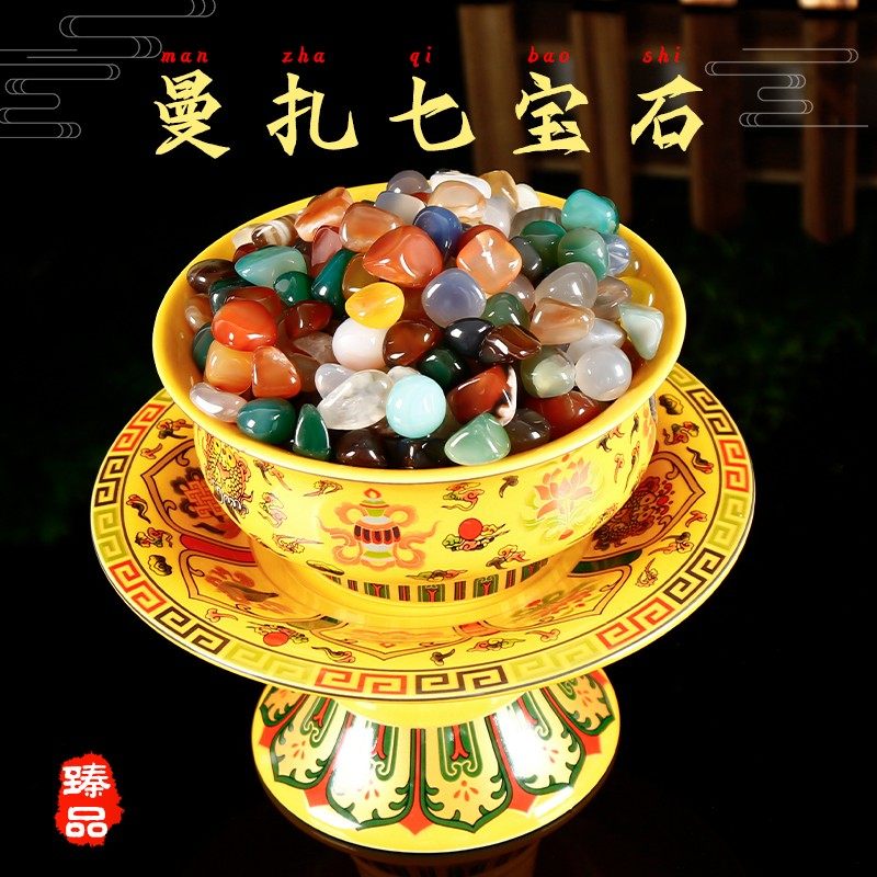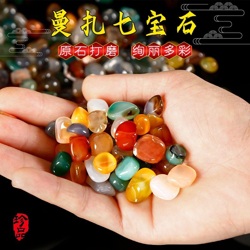 📚 七宝石散装七宝石七彩玛瑙宝石天然藏式供曼扎盘混合1斤装大小号