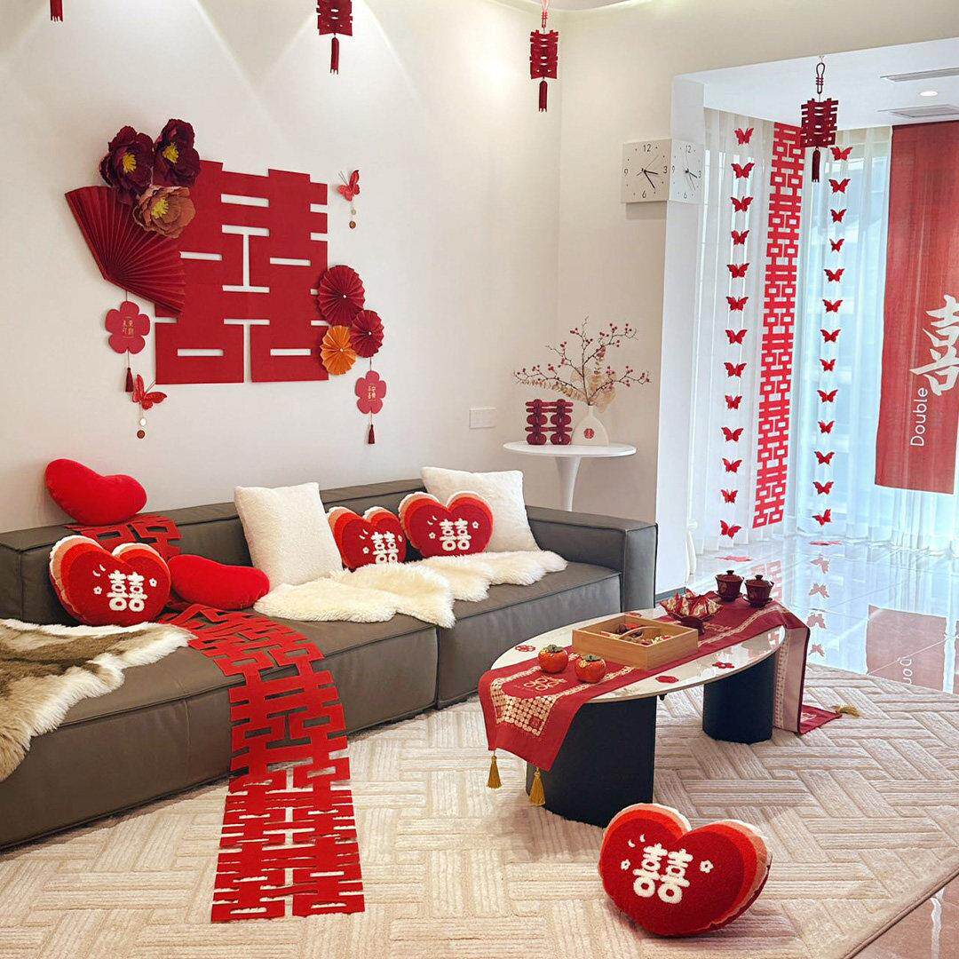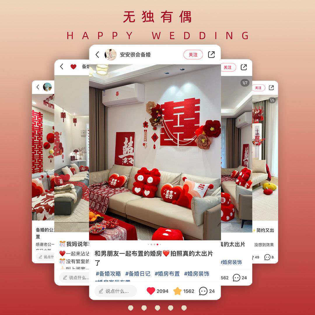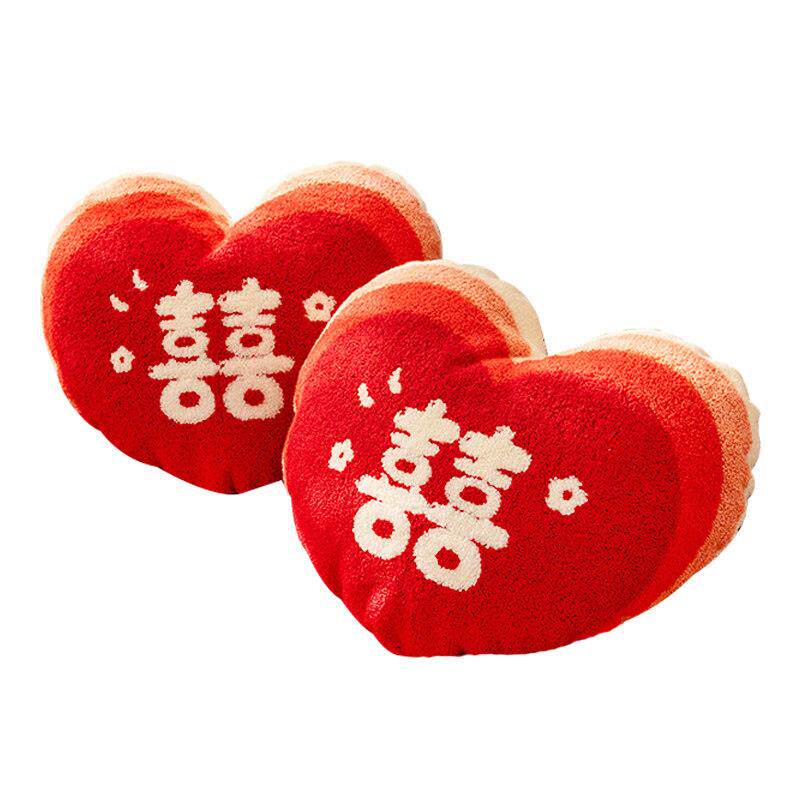 📚 结婚礼物送新人情侣爱心形抱枕婚房布置装饰沙发靠枕喜字红色靠垫