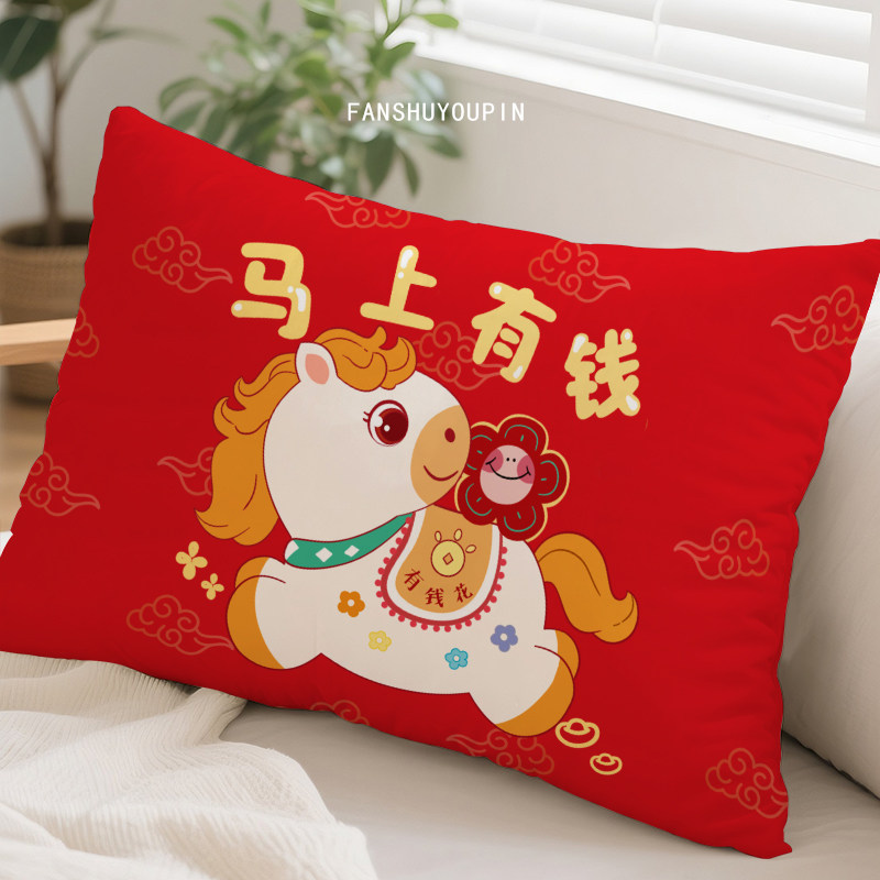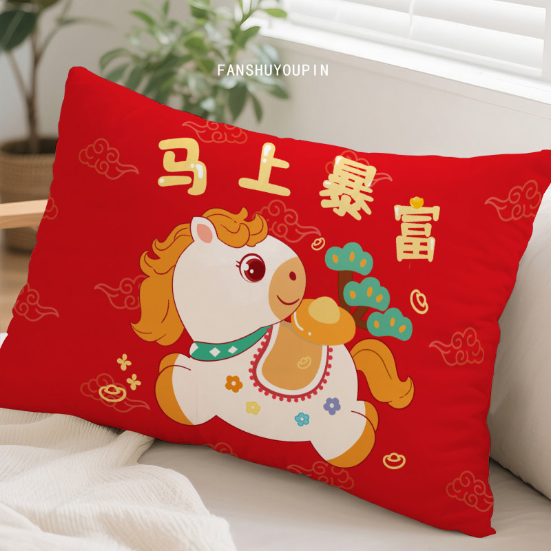 📚 马年抱枕2026新年红色氛围装饰靠垫沙发客厅靠背喜庆长方形靠枕套