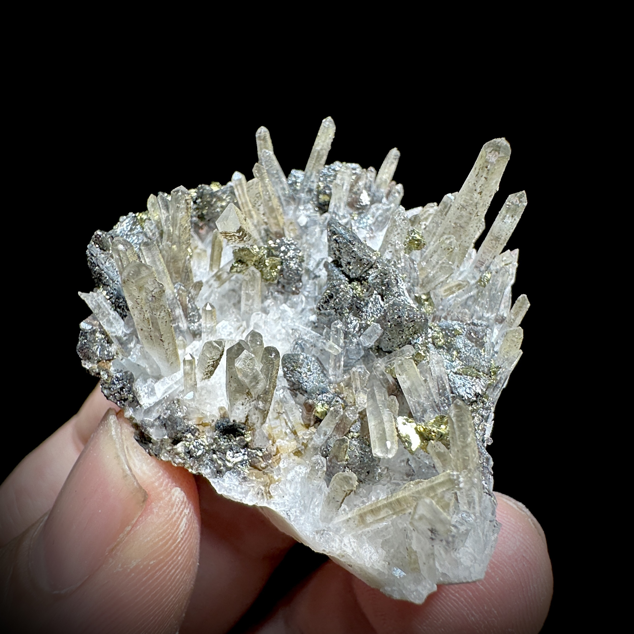 📚 内蒙古银黝铜矿黄铜矿水晶簇 天然矿物晶体标本矿石原石摆件d16