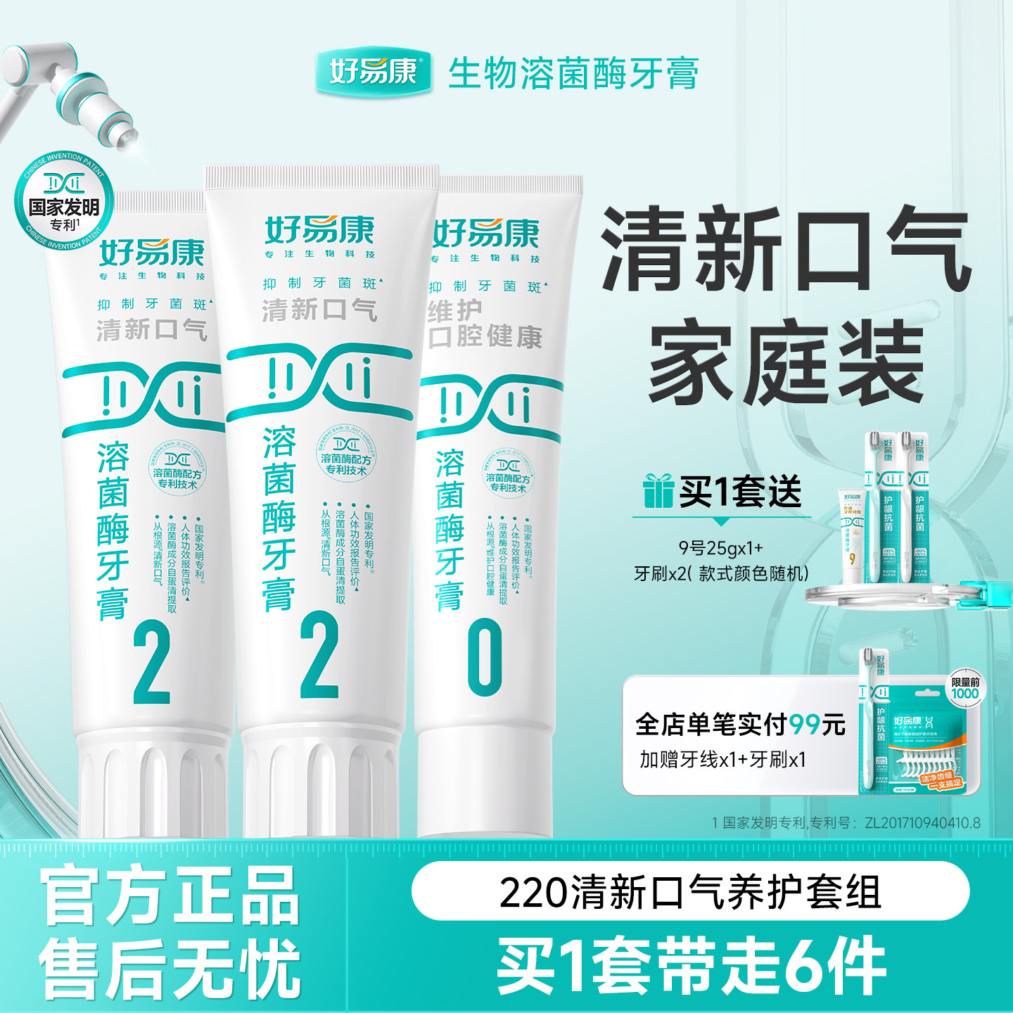 📚 好易康溶菌酶牙膏清新口气减轻口气亮白牙齿220套装成人大家庭装