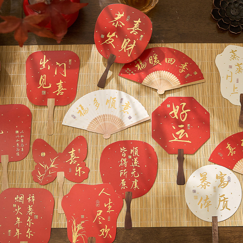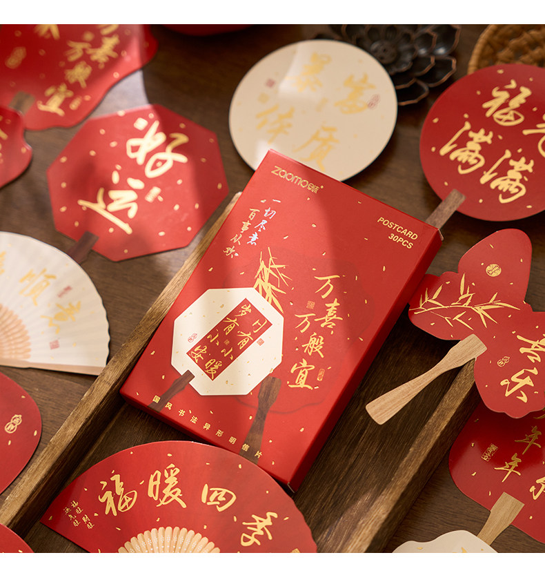 📚 万喜万般宜烫金盒装明信片国风异形墙面喜庆书法文字装饰素材卡片