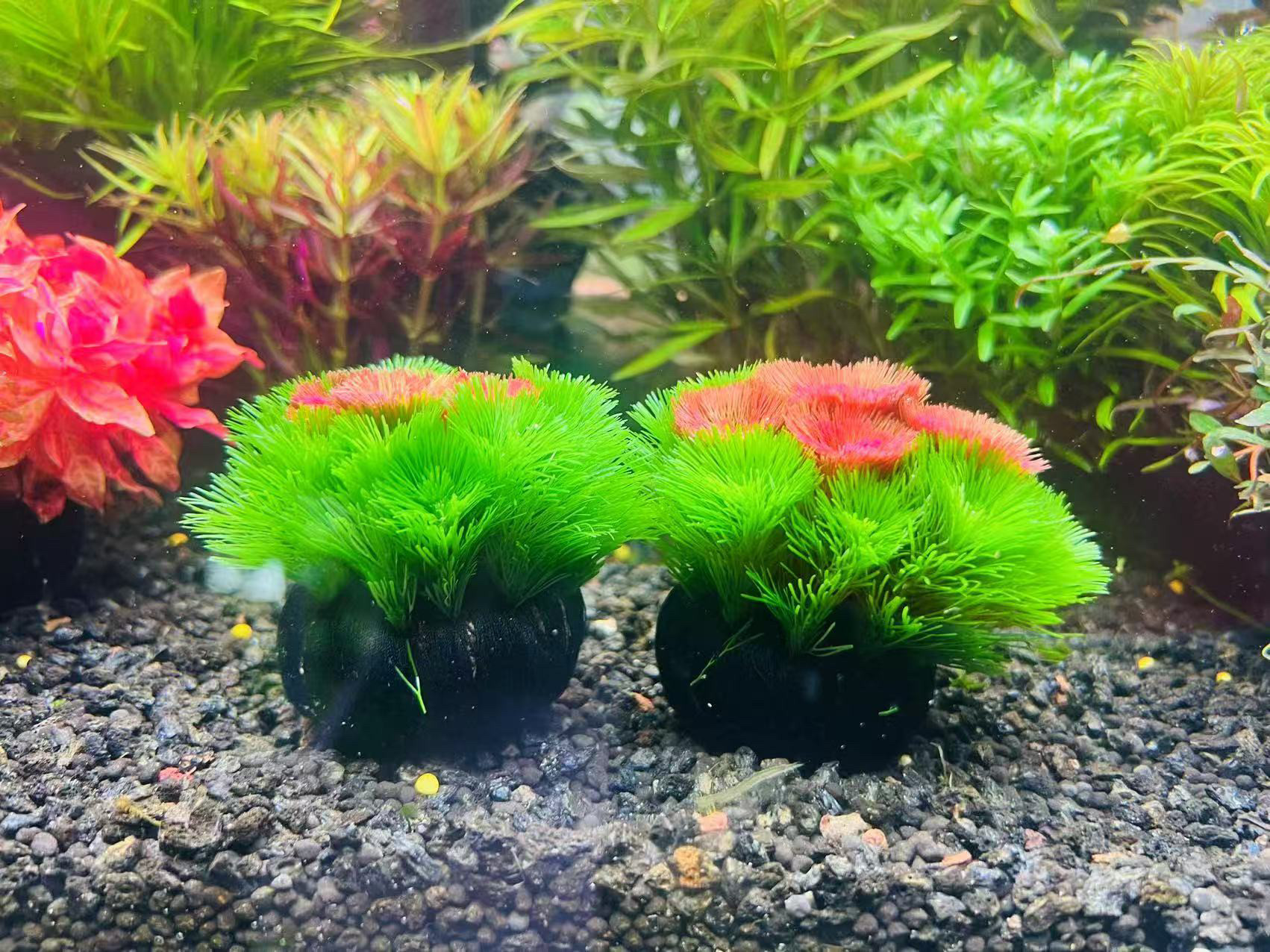 📚 红菊绿菊组合坨草会开花的鱼缸造景草场直发懒人水培增氧淡水水草