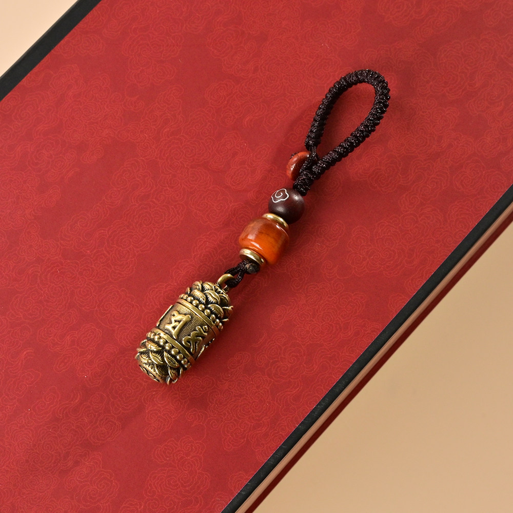 📚 黄铜复古风楞严咒挂件吊坠可打开拧开放朱砂饰品车钥匙扣绳男女