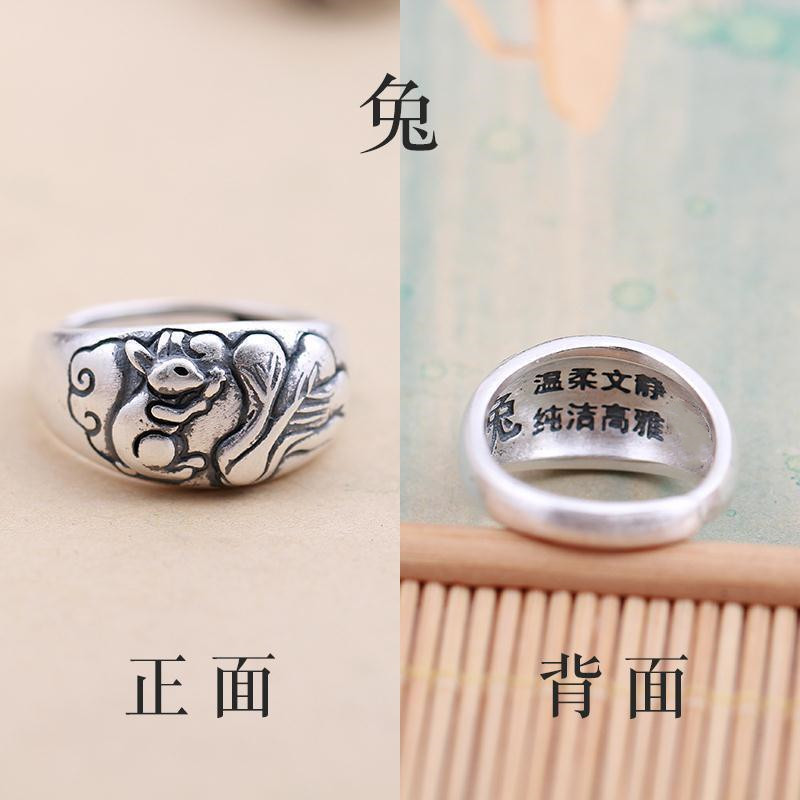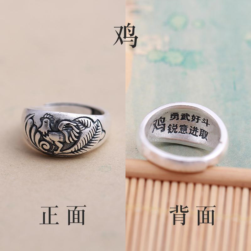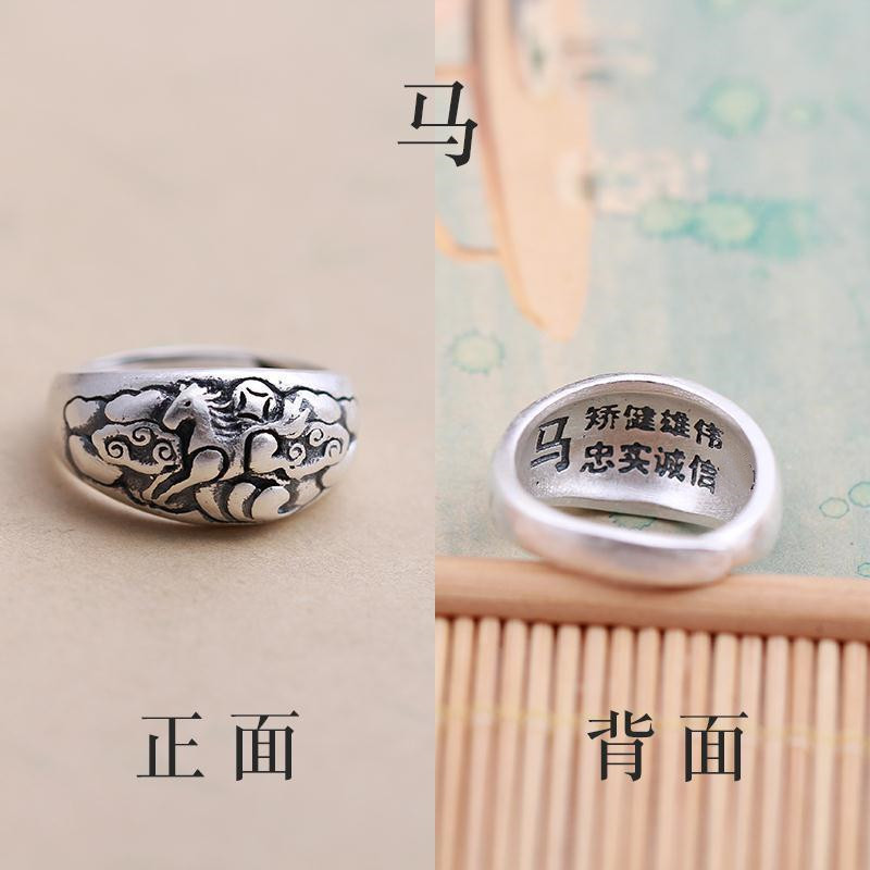📚 纯银十二生肖守护戒指饰品复古做旧男女情侣食指环时尚个性可调节