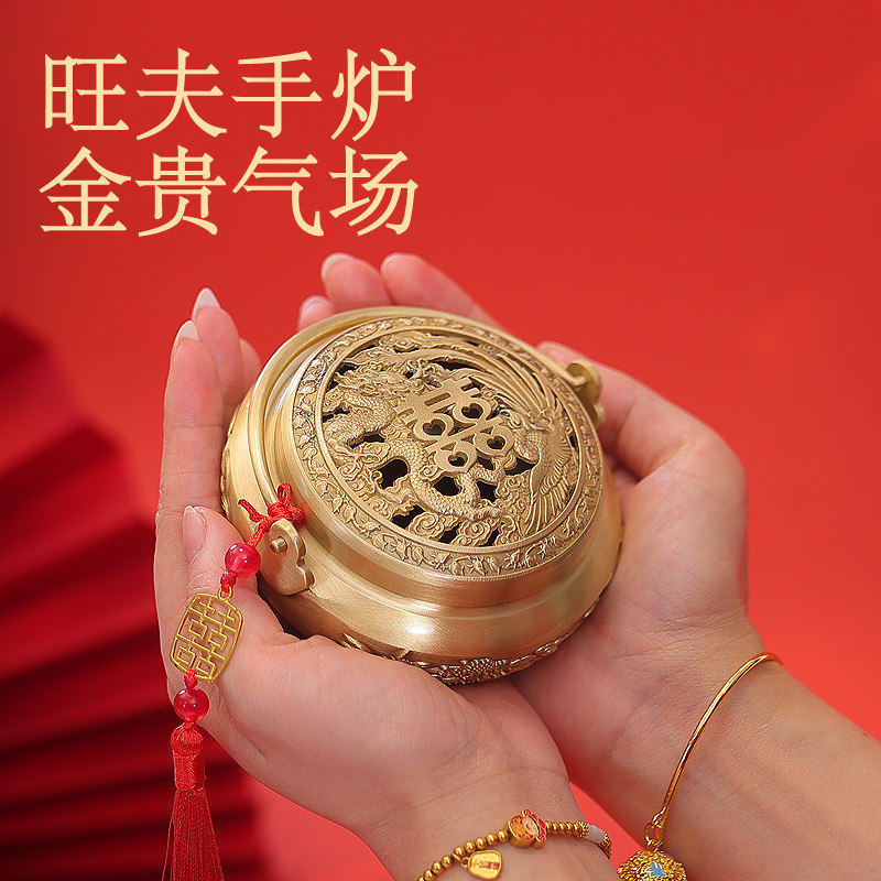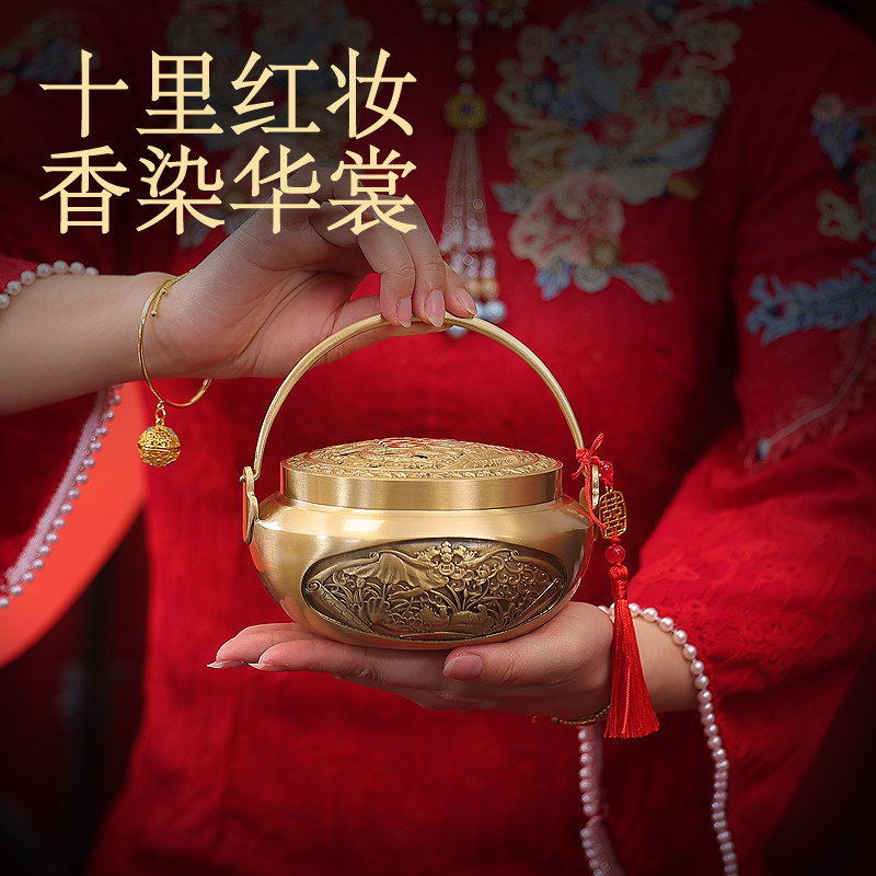 📚 结婚用品铜香炉新娘陪嫁妆火炉旺夫火囱暖手火铳手提炉火冲旺盆炉
