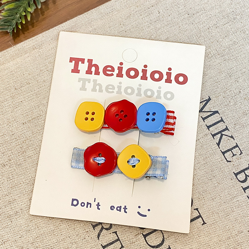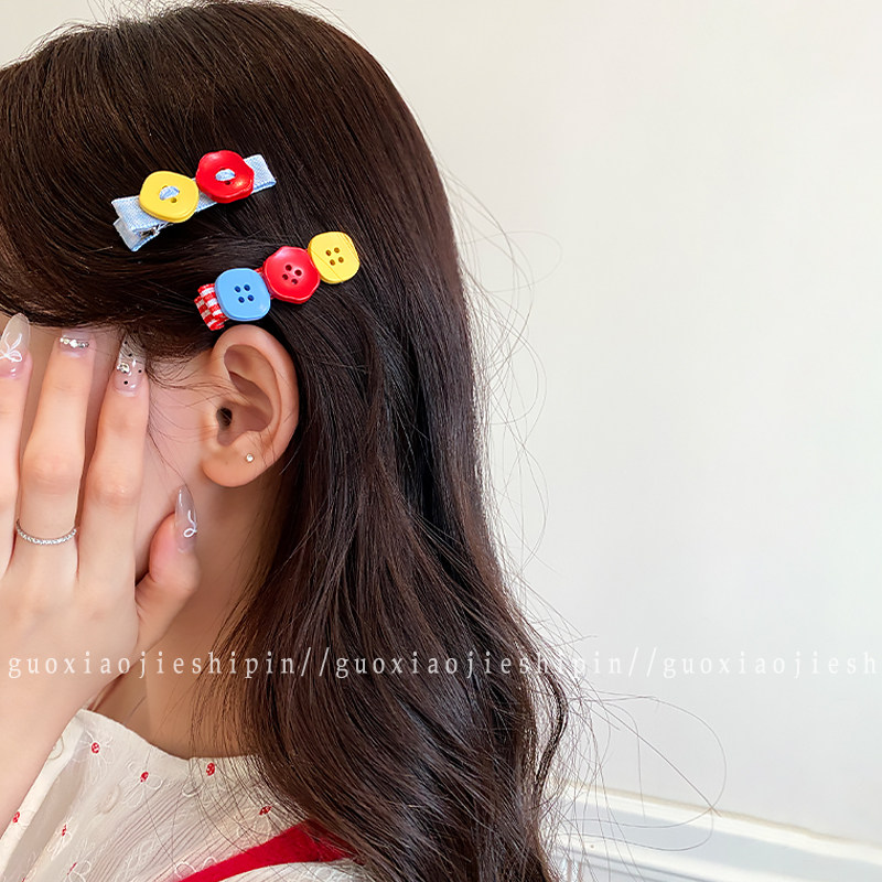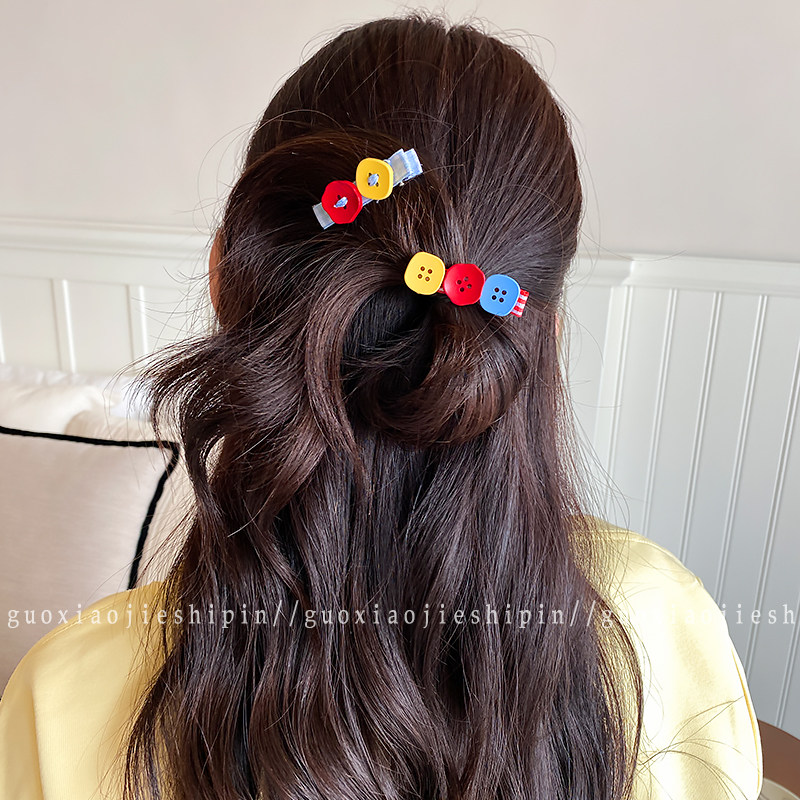 📚 日韩彩色纽扣发夹女甜美侧边刘海碎发夹女童新款一字鸭嘴夹发卡