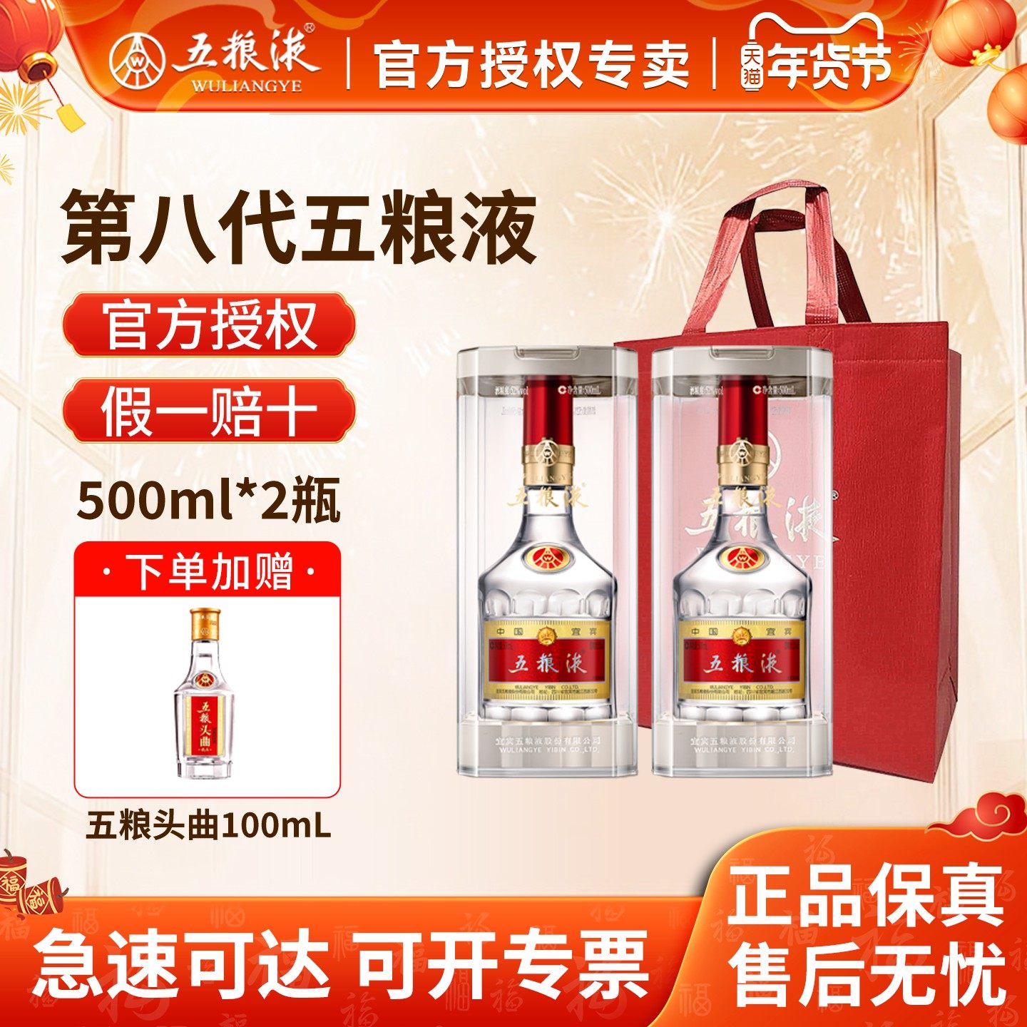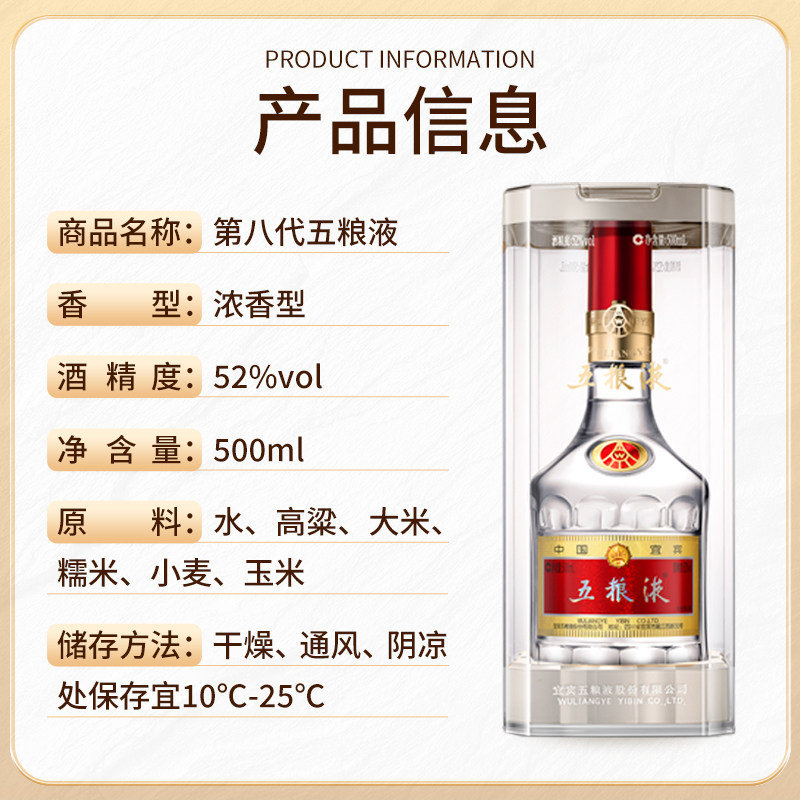 📚 【授权正品】五粮液52度第八代普五浓香型白酒500ml*2瓶过节送礼