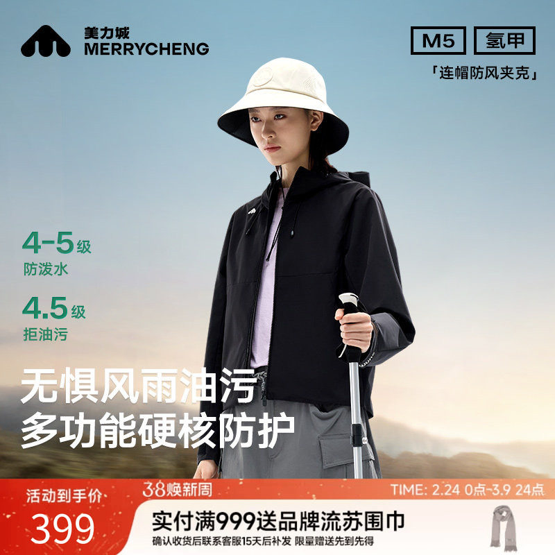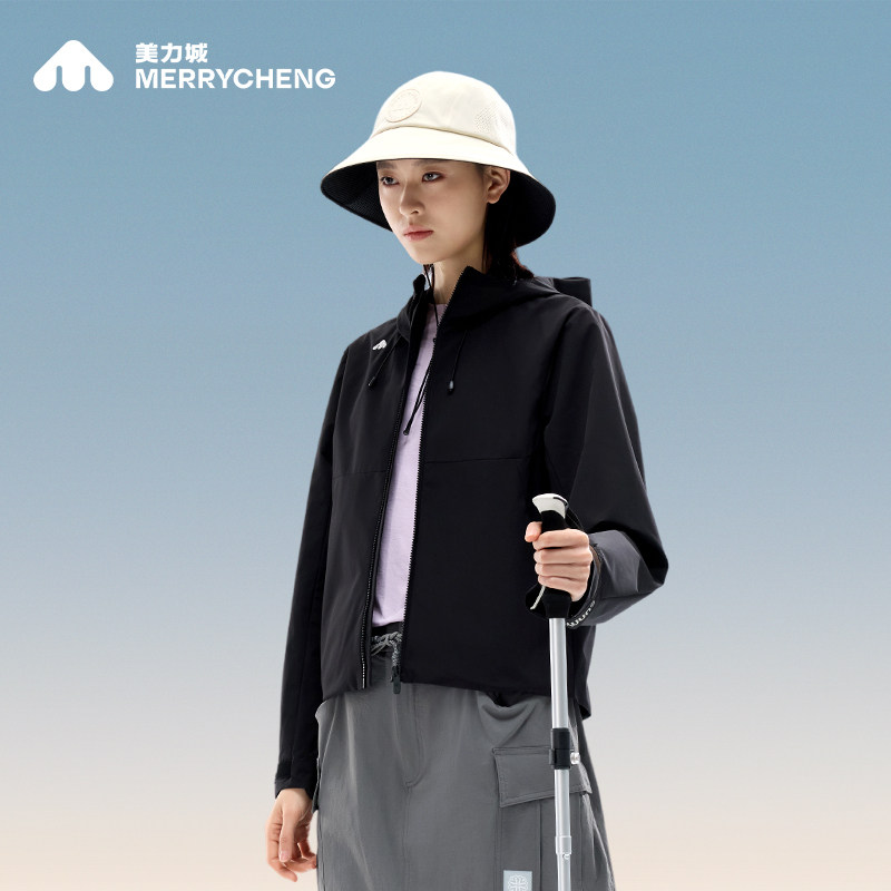📚 美力城夹克防水透气户外休闲连帽防风登山服薄款时尚外套春夏女款