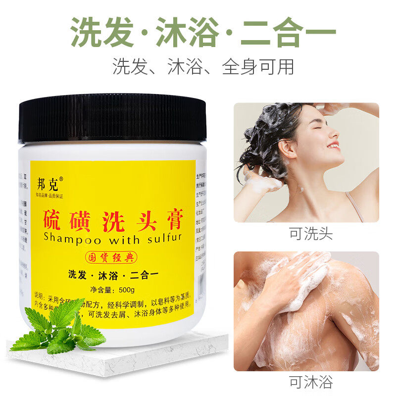 📚 邦克硫磺洗发膏清爽去屑止痒清洁洗发沐浴二合一男女士国货洗发液
