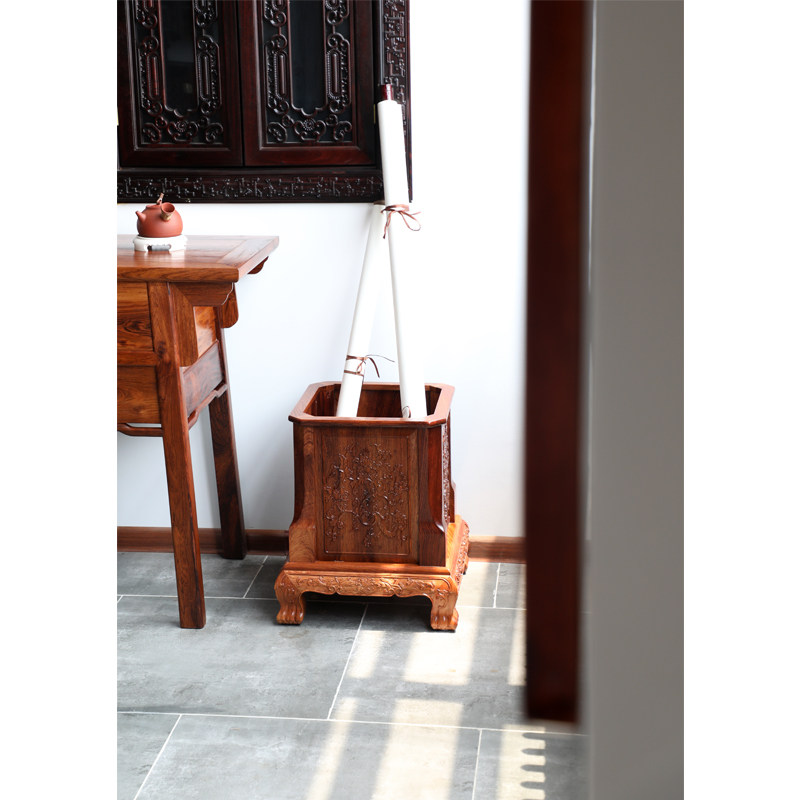 📚 齐家守艺人伯利兹黄檀画卷缸画轴筒文人书房摆件把玩收纳红木装饰