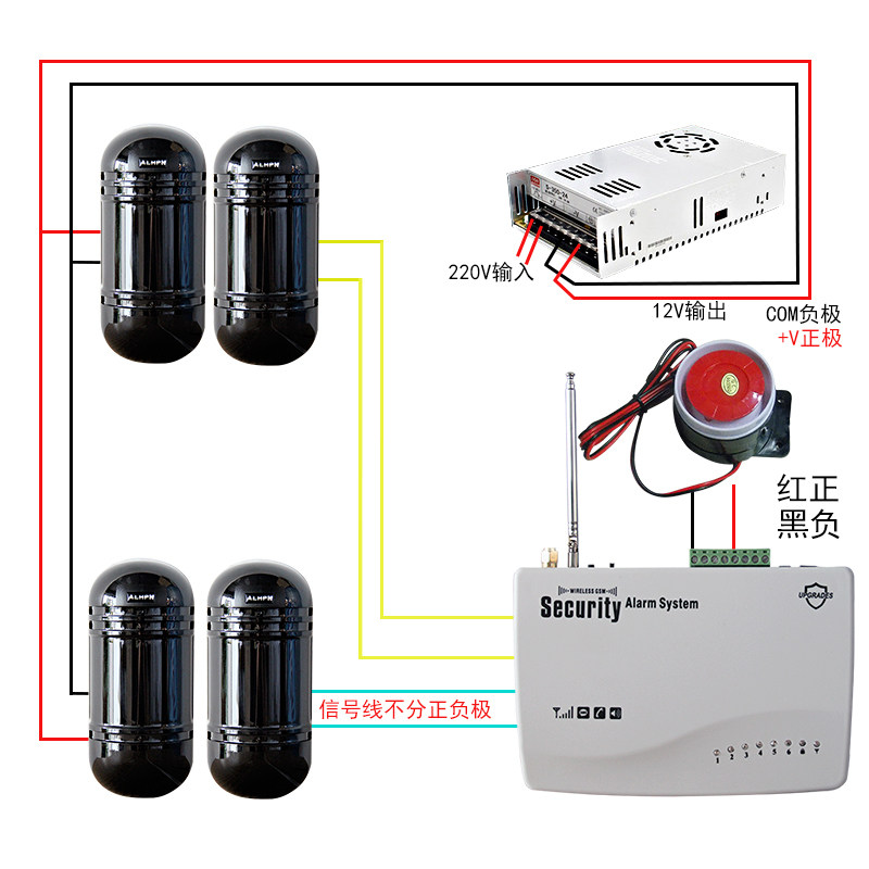 📚 GSM红外防盗报警器 ABT-100双光束红外对射工厂围墙周界报警系统