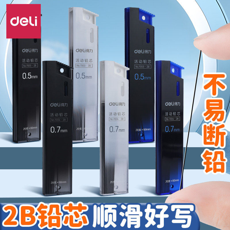 📚 得力活动铅笔芯0.5mm/0.7mm按动铅芯学生文具用品自动铅芯替换芯HB/2B小初高中大学生书写作业教学功课铅笔芯