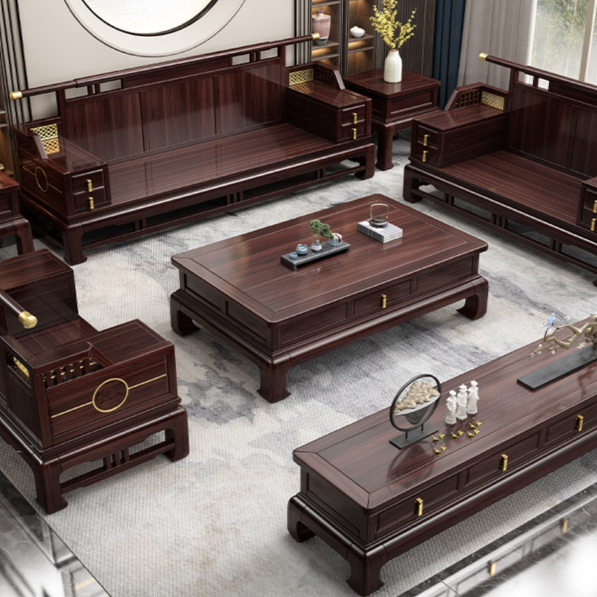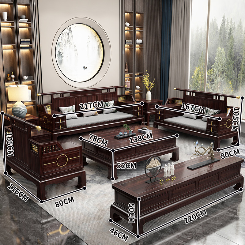 📚 全实木沙发榫卯结构乌金木新中式禅意客厅大小户型古典冬夏两用