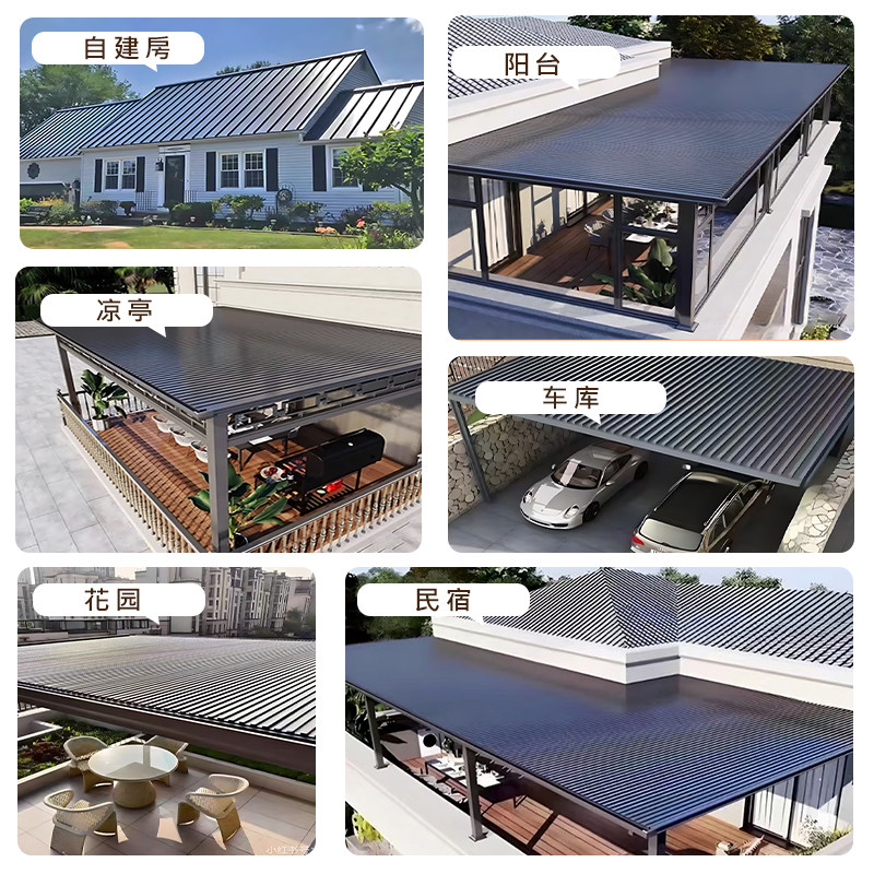 📚 铝合金屋顶瓦双层隔热铝瓦长城凹凸大板遮阳棚雨棚阳光房凉亭防晒