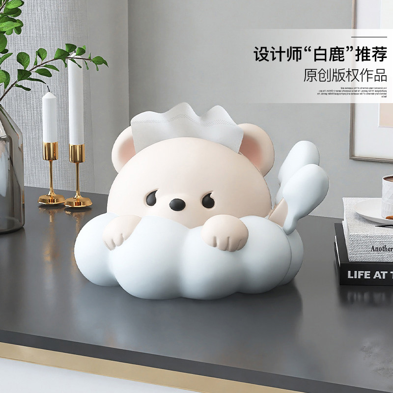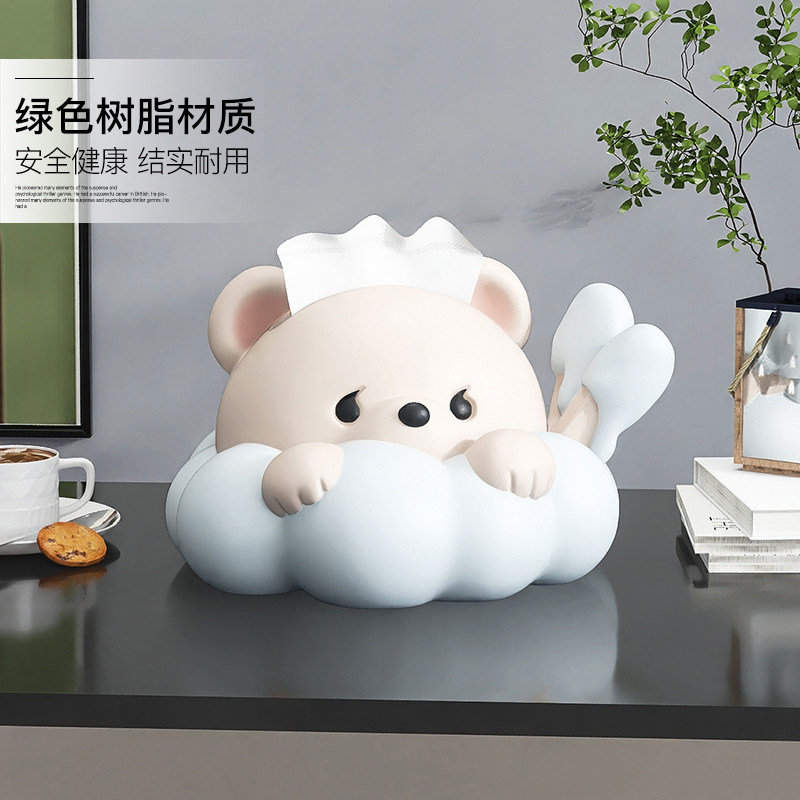 📚 奶油风创意熊纸巾盒摆件客厅餐桌玄关酒柜家居饰品餐巾纸抽盒子