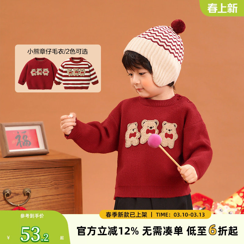 📚 咔咔熊猫儿童新年红色拜年服婴儿毛衣宝宝秋冬衣服男童女童上衣