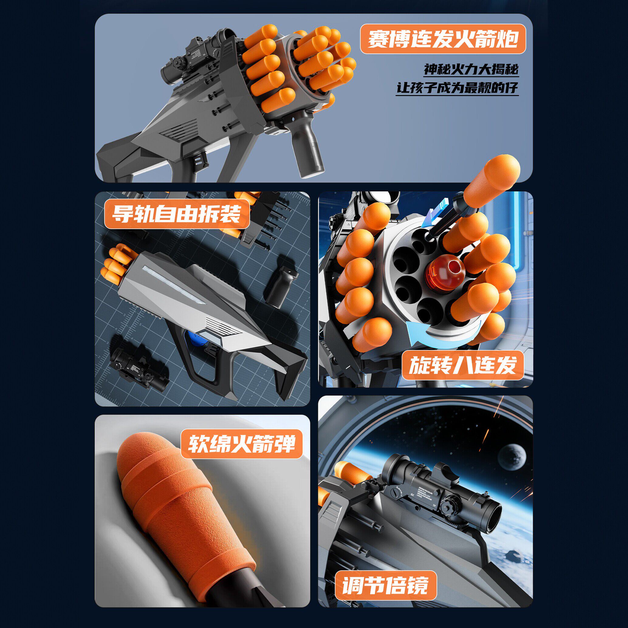 📚 儿童玩具八连发榴弹炮发射器火箭炮可发射导弹军事模型男孩仿真小