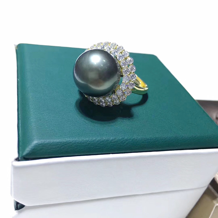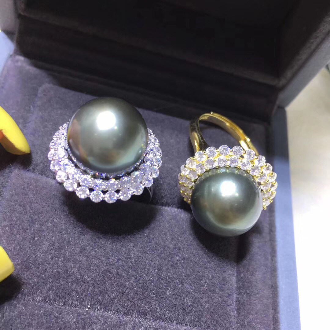 📚 DIY珍珠配件S925纯银镀18K金大珍珠戒指空托华丽开口戒配12-14mm