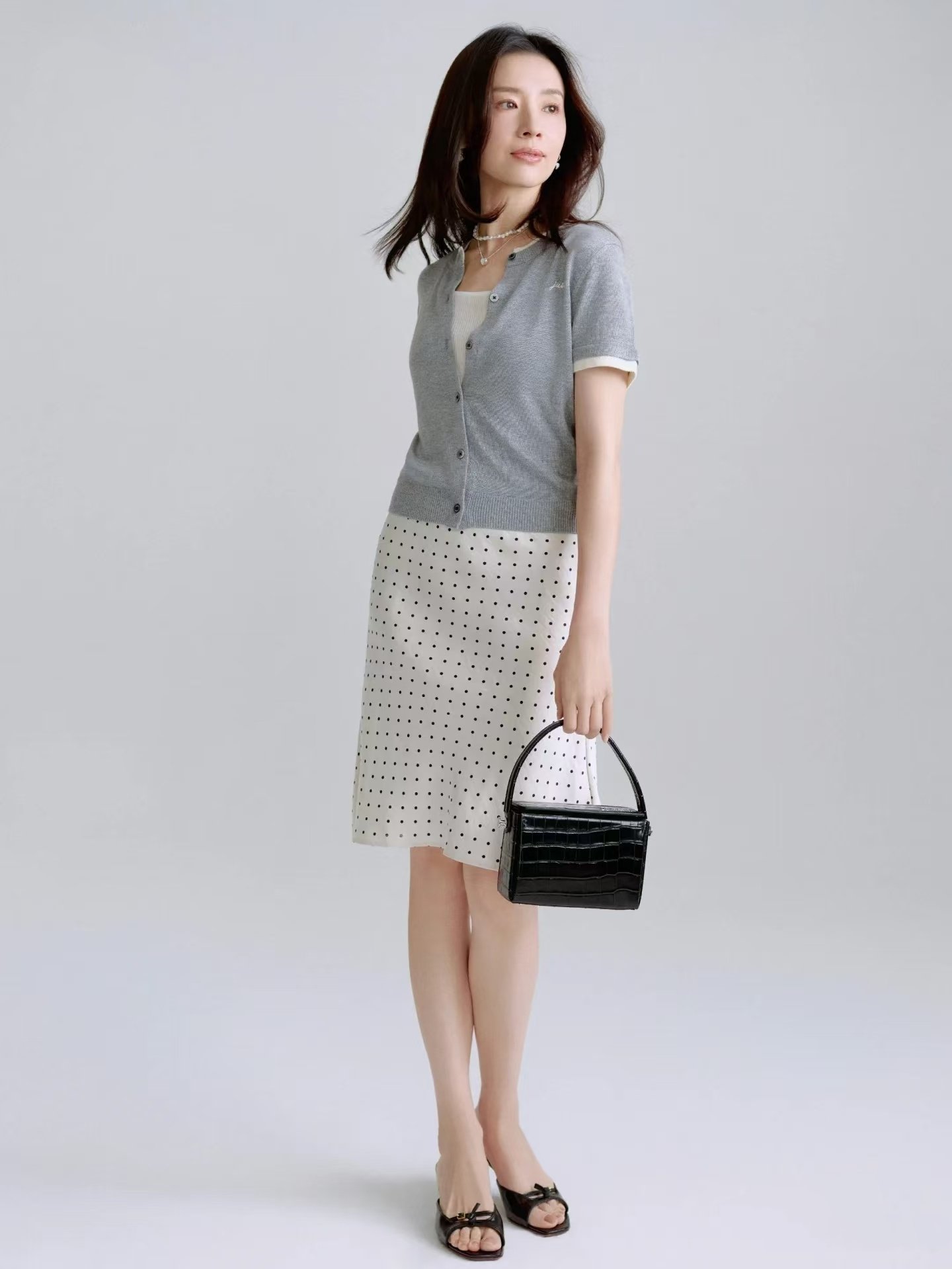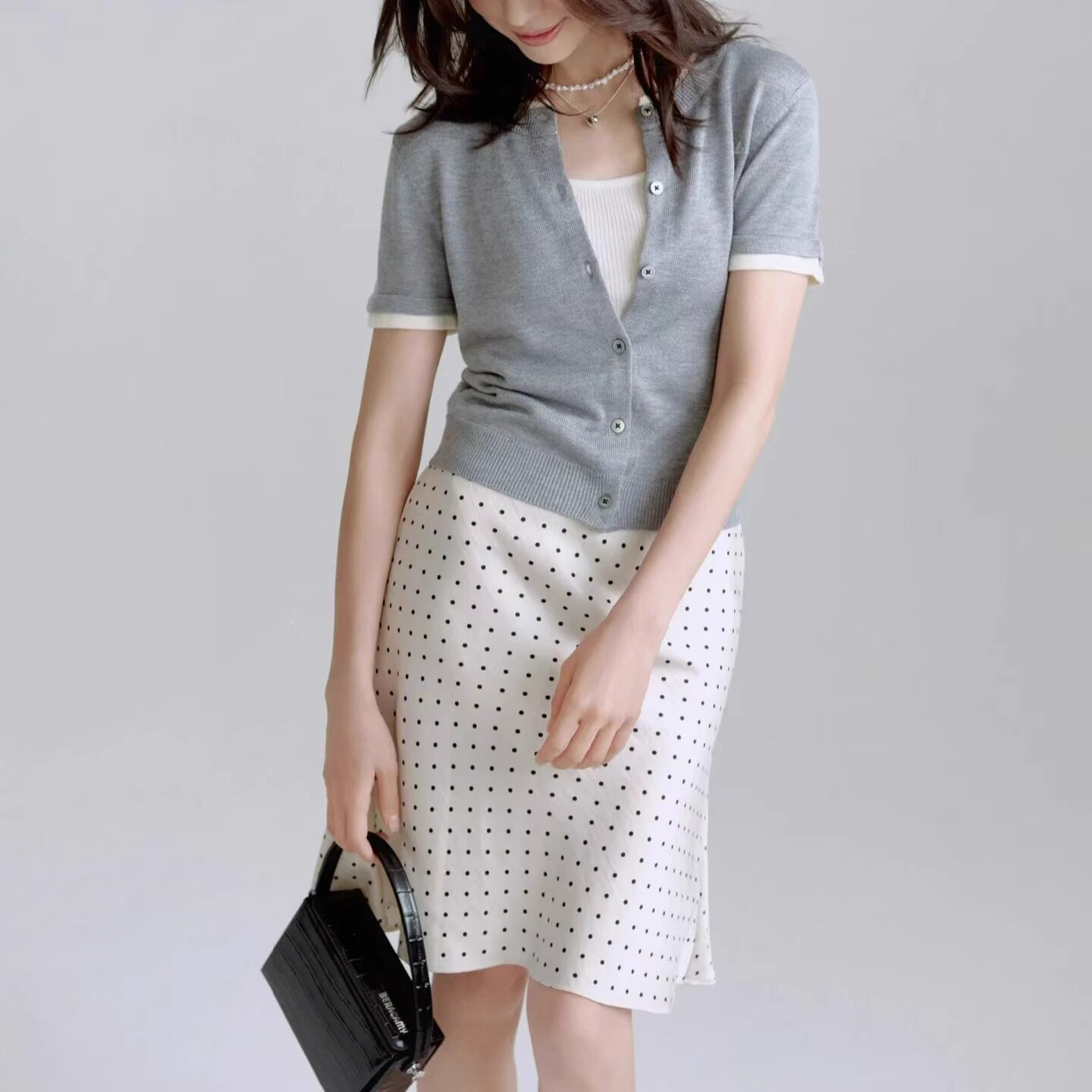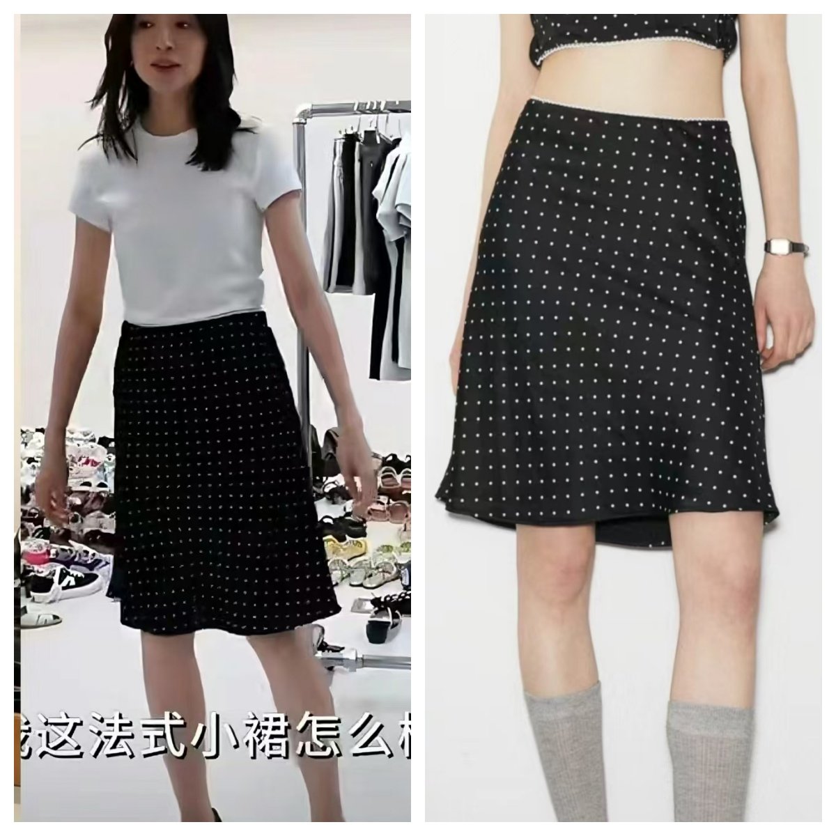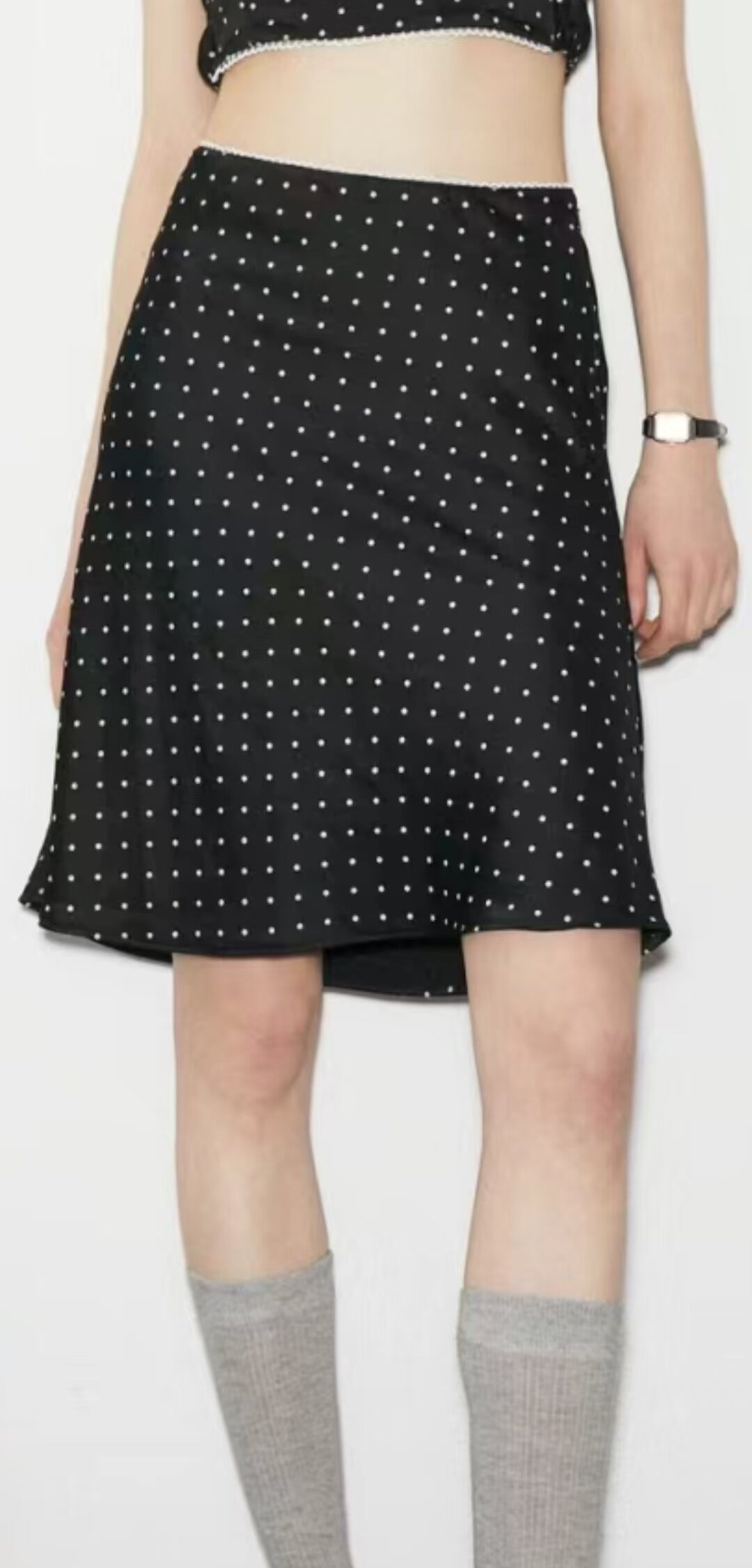 📚 董洁同款2024春夏新款波点缎面花边小鱼尾公主裙小圆点半身裙现货